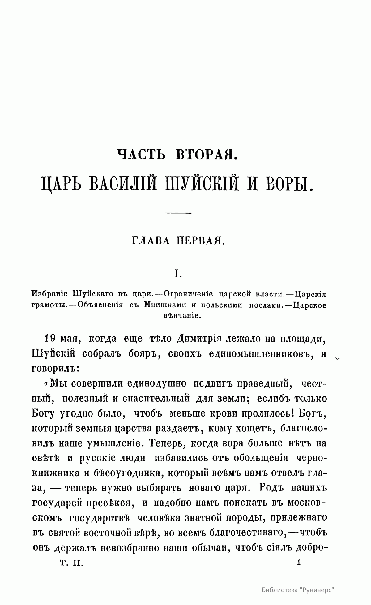 Перед читателем прижизненное издание трудов Н. И. Костомарова, в котором удачно соединялись историк-мыслитель и художник, что обеспечило ему не только одно из первых мест в ряду русских историков, но и наибольшую популярность среди читающей публики. Глубоко вдумываясь, почти вживаясь в изучаемую им старину, он воспроизводил ее в своих работах такими яркими красками, в таких выпуклых образах, что она надолго оставалась в памяти читателя. В первых трех томах и в двенадцатом томе опубликованы различные статьи. 1 – «Мысли о федеративном начале древней Руси»; «Черты народной южнорусской истории»; «Две русские народности»; «Мистическая повесть о Нифонте. Памятник русской литературы»; «Легенда о кровосмесителе»; «О значении Великого Новгорода»; «Должно ли считать Бориса Годунова основателем крепостного права?»; «Великорусские религиозные вольнодумцы в XVI веке. – Матвей Башкин и его соучастник Феодосий Косой»; «Иван Сусанин. Историческое исследование». 2 – «Иван Свирговский, украинский казацкий гетман XVI века»; «Гетманство Выговского»; «Бунт Стеньки Разина»; «По поводу мыслей светского человека, о книге «Сельское духовенство». 3 – «Куликовская битва»; «Ливонская война»; «Южная Русь в конце XVI века»; «Литовская народная поэзия»; «Об отношении русской истории к географии и этнографии». 12 – «Начало единодержавия в Древней Руси»; «Гетманство Юрия Хмельницкого»; «Церковно-историческая критика в XVII веке»; «История раскола у раскольников»; «Воспоминания о молоканах». Четвертый, пятый и шестой тома посвящены Смутному времени московского государства в начале XVII столетия. Седьмой и восьмой – истории Новгорода, Пскова и Вятки во время удельно-вечевого уклада. Девятый, десятый и одиннадцатый – Богдану Хмельницкому.