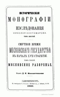Историческiя монографiи и изслѣдованiя Николая Костомарова. Томъ шестой