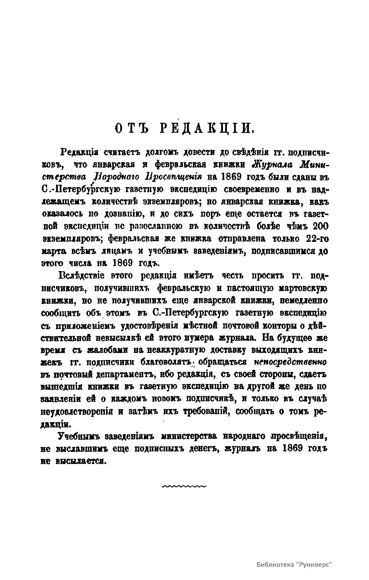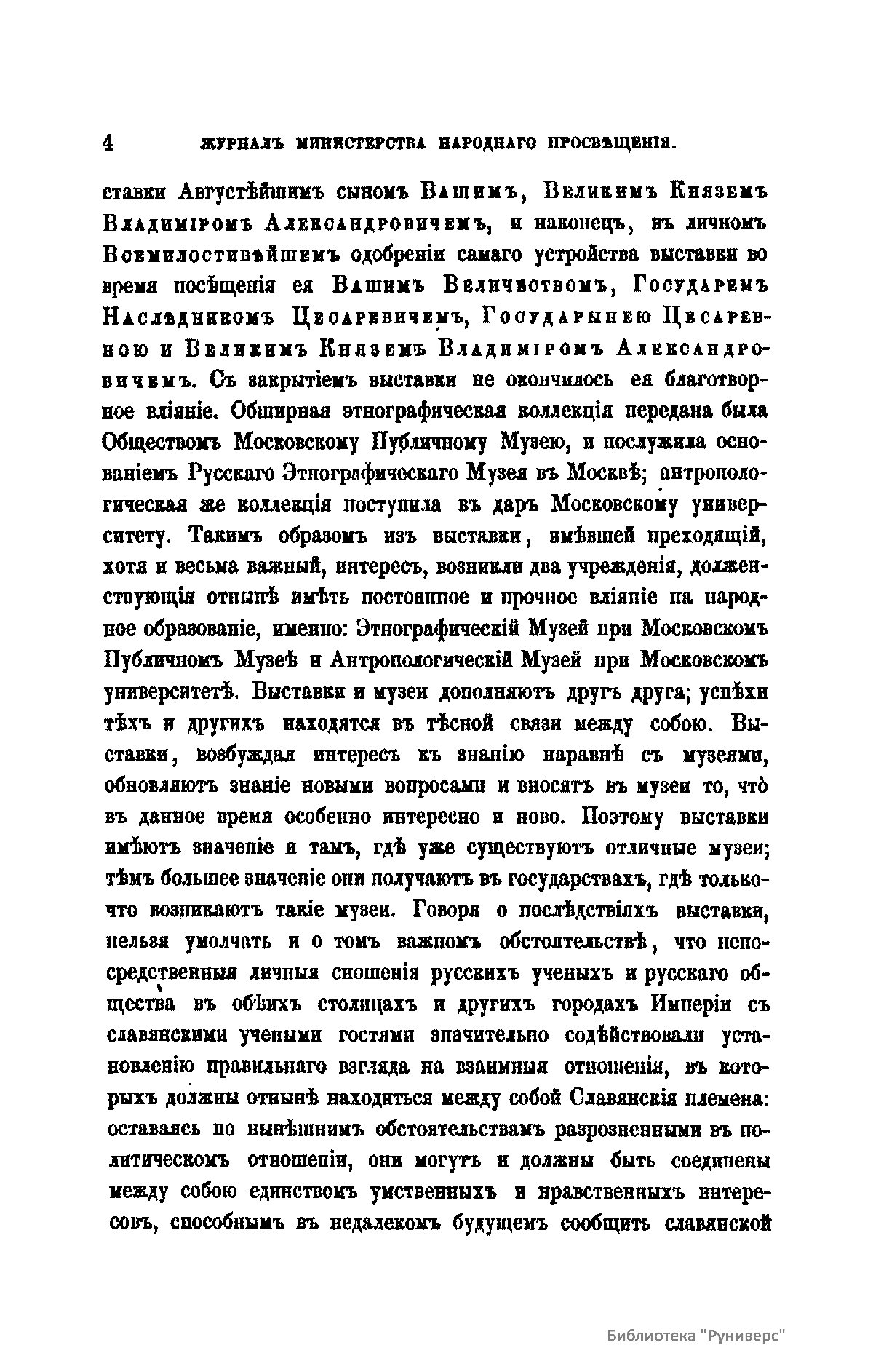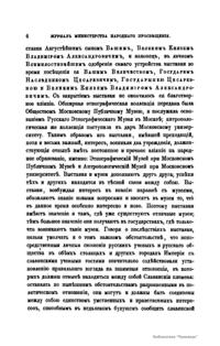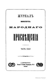 Журнал Министерства народного просвещения выходил с 1834-го по 1917 год. Официальный периодический журнал об успехах просвещения в России. Издатели журнала уверены в том, что «если для каждого человека необходим выход из грубой тьмы невежества и беспрерывное дальнейшее движение к свету, то для народов необходимо попечительное участие правительства в образовании. Только правительство имеет все средства знать и высоту успехов всемирного образования, и настоящие нужды Отечества».