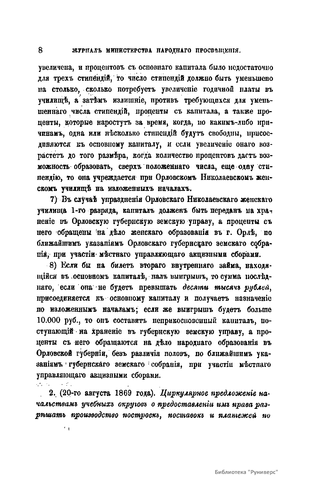 Журнал Министерства народного просвещения выходил с 1834-го по 1917 год. Официальный периодический журнал об успехах просвещения в России. Издатели журнала уверены в том, что «если для каждого человека необходим выход из грубой тьмы невежества и беспрерывное дальнейшее движение к свету, то для народов необходимо попечительное участие правительства в образовании. Только правительство имеет все средства знать и высоту успехов всемирного образования, и настоящие нужды Отечества».