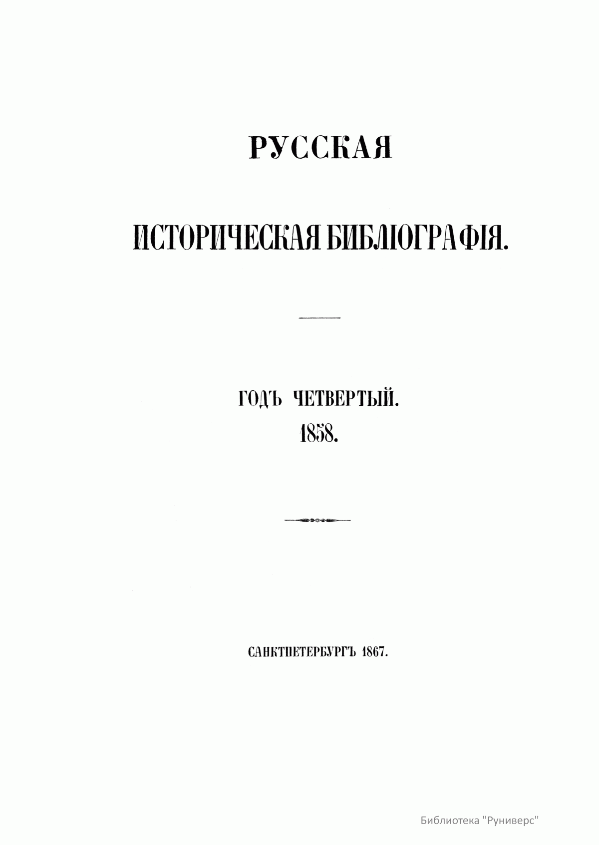 Русская историческая библиографiя. Годъ четвертый. 1858