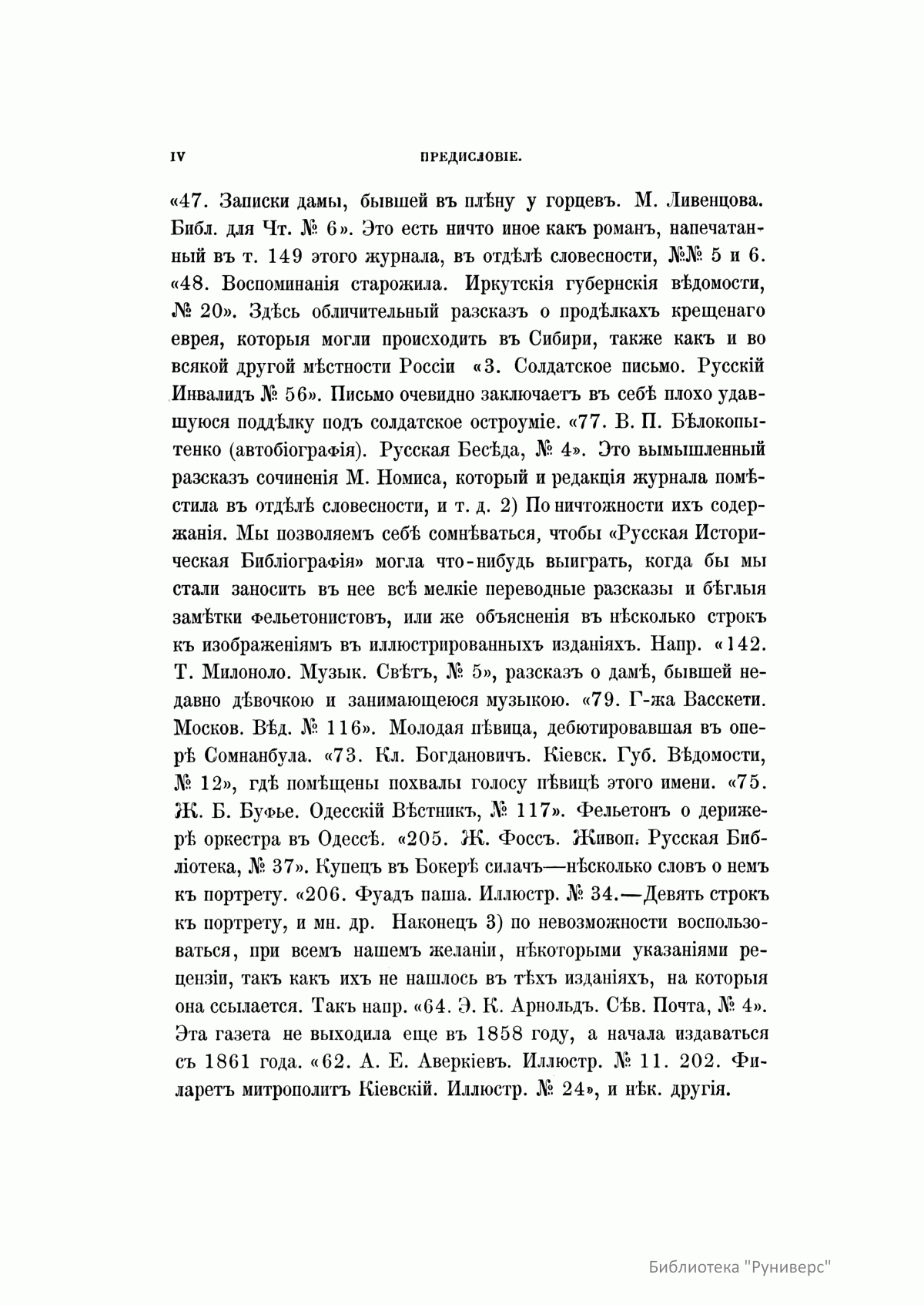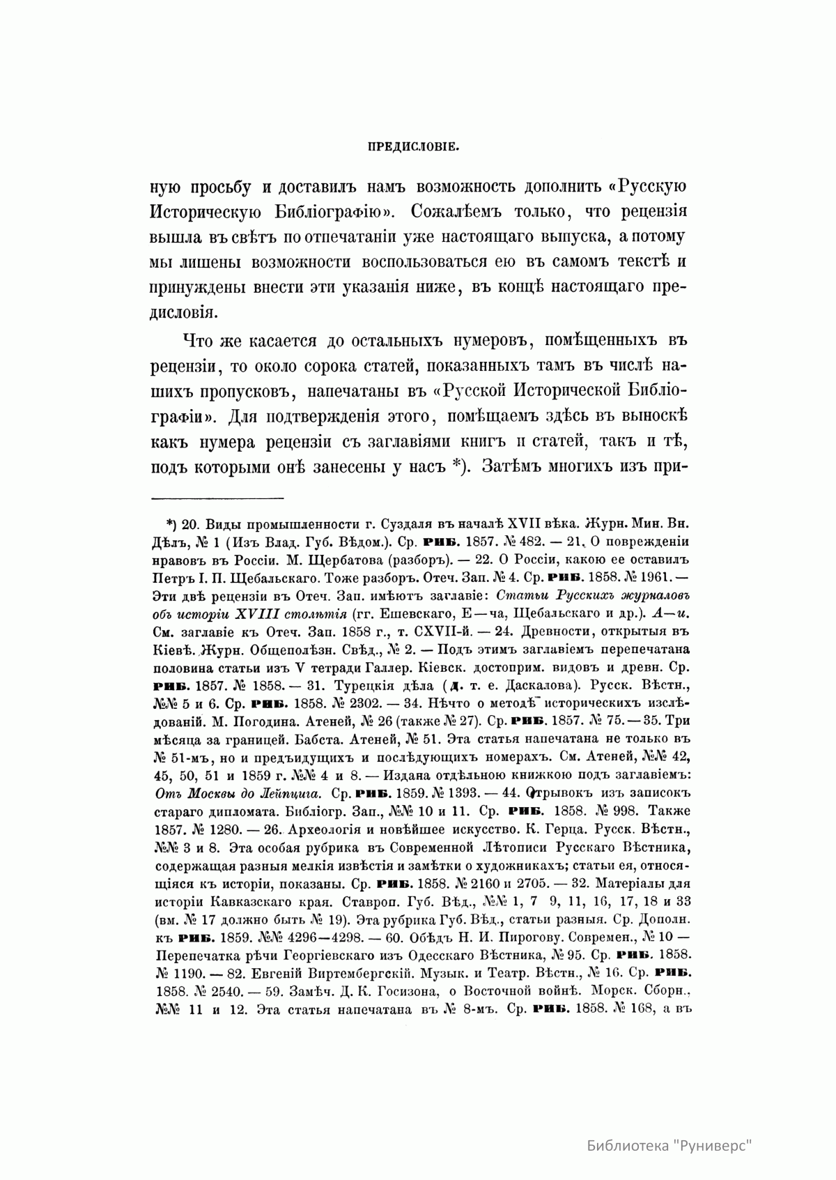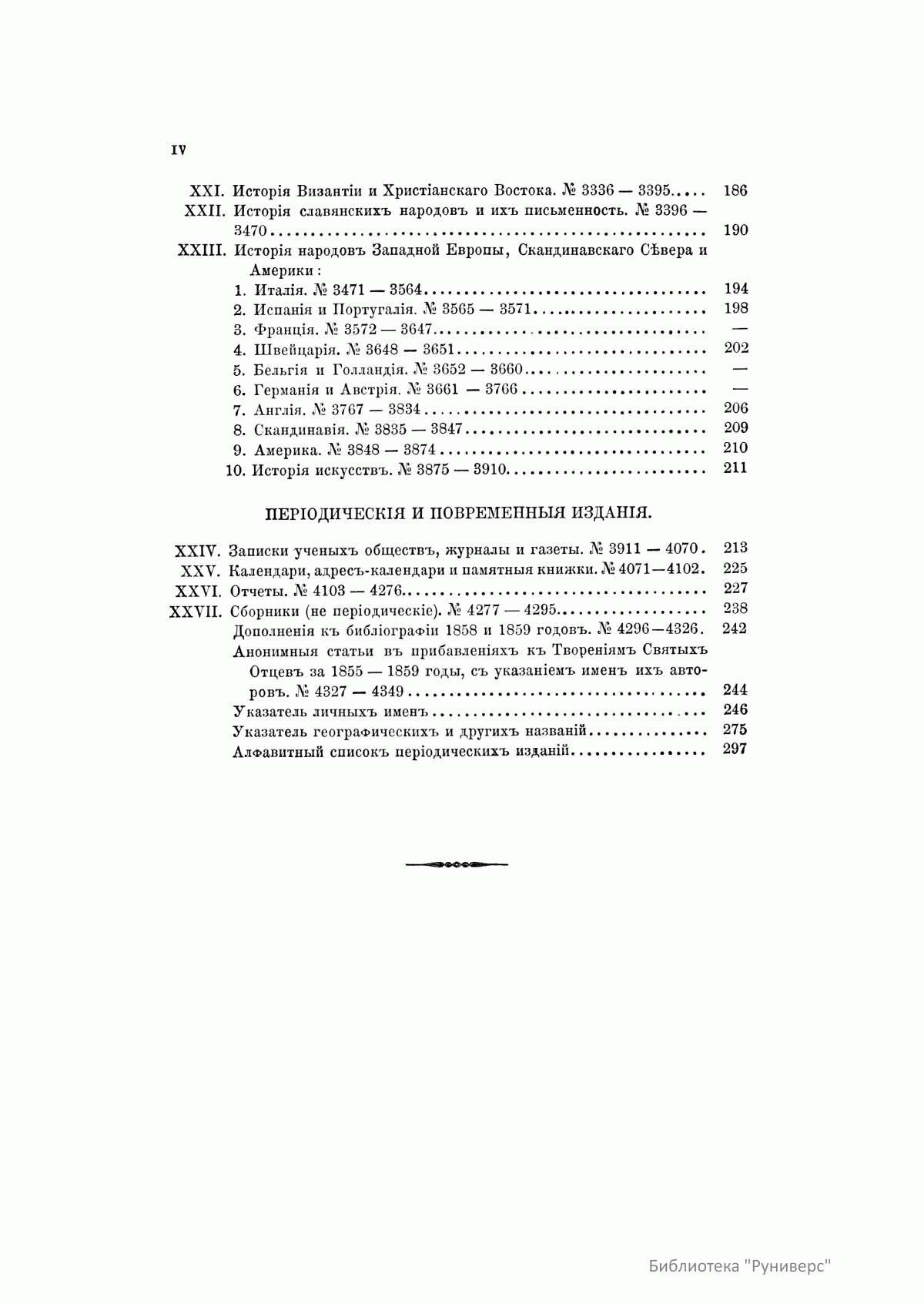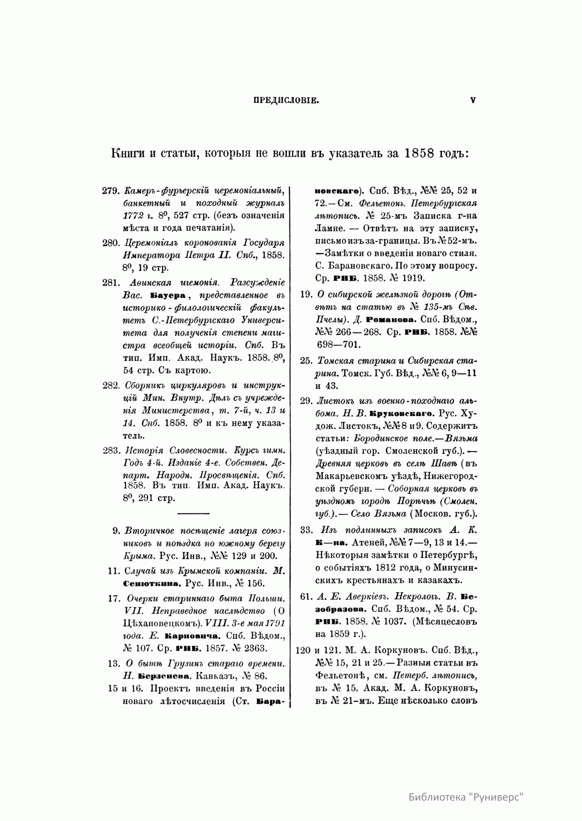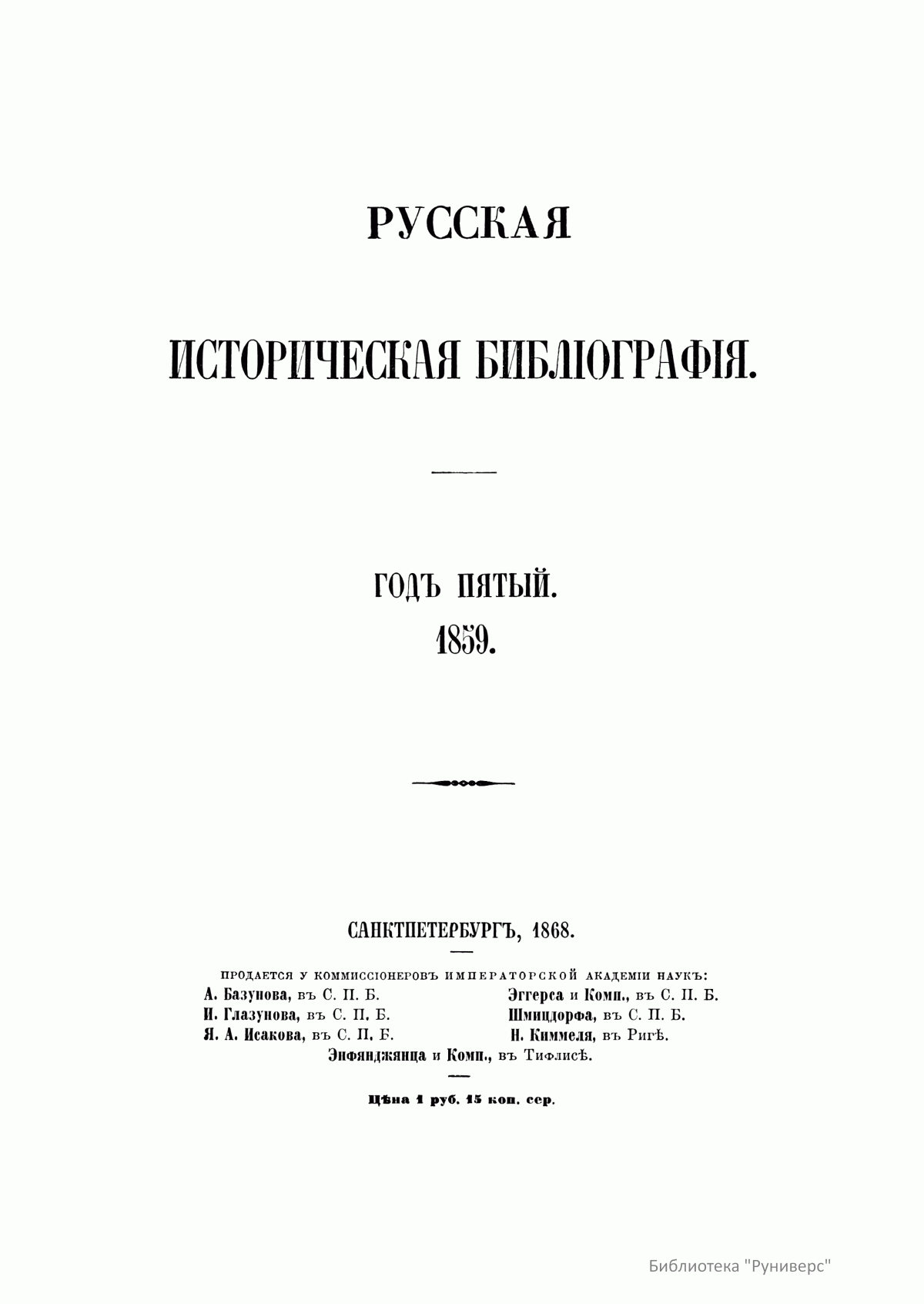 В десяти томах «Русской исторической библиографии» заключается описание свыше 44 000 книг, карт, периодических изданий, статей из журналов и газет по русской и всеобщей истории. Кроме этого, богато представлена литература о Крымской войне 1853–1856 гг., реформе 1860-х гг., польском восстании 1863–1864 гг. и о других событиях.