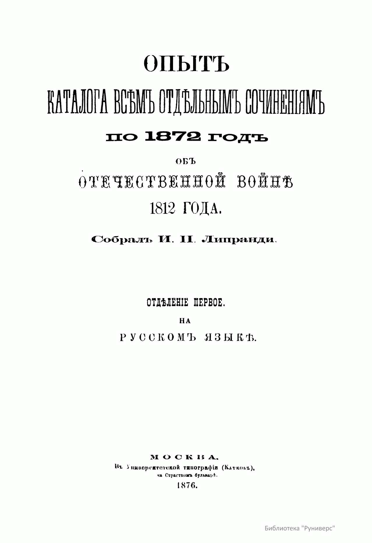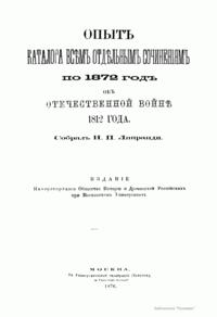 Опытъ каталога всѣмъ отдѣльнымъ сочиненiямъ по 1872 годъ об Отечественной войнѣ 1812 года