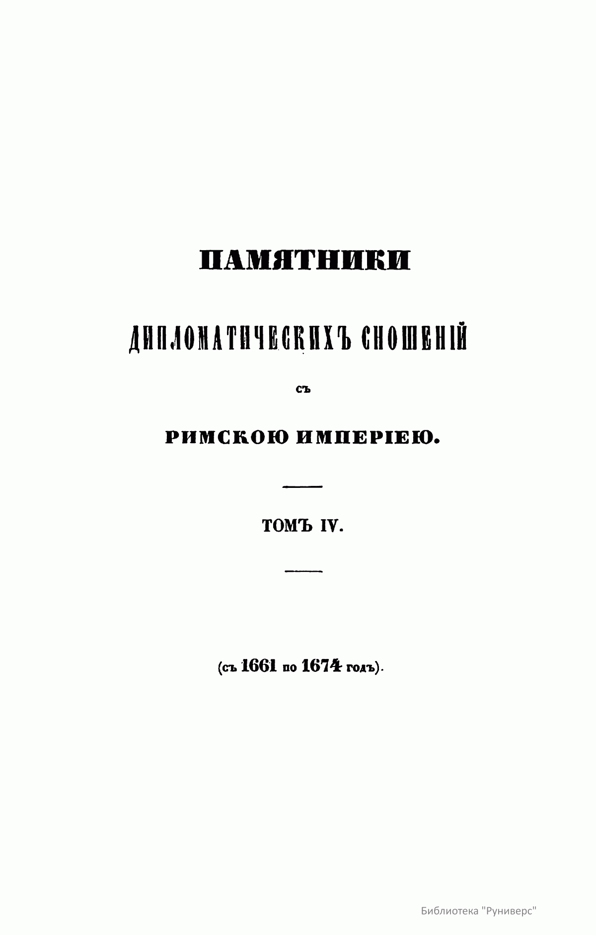 Памятники дипломатических сношений с Римскою Империею. Том IV. С 1661 по 1674 год