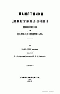 Памятники дипломатических сношений древней России с державами иностранными
