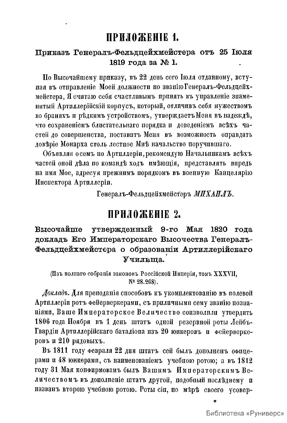 Приложенiя къ историческому очерку образованiя и развитiя артиллерiйскаго училища