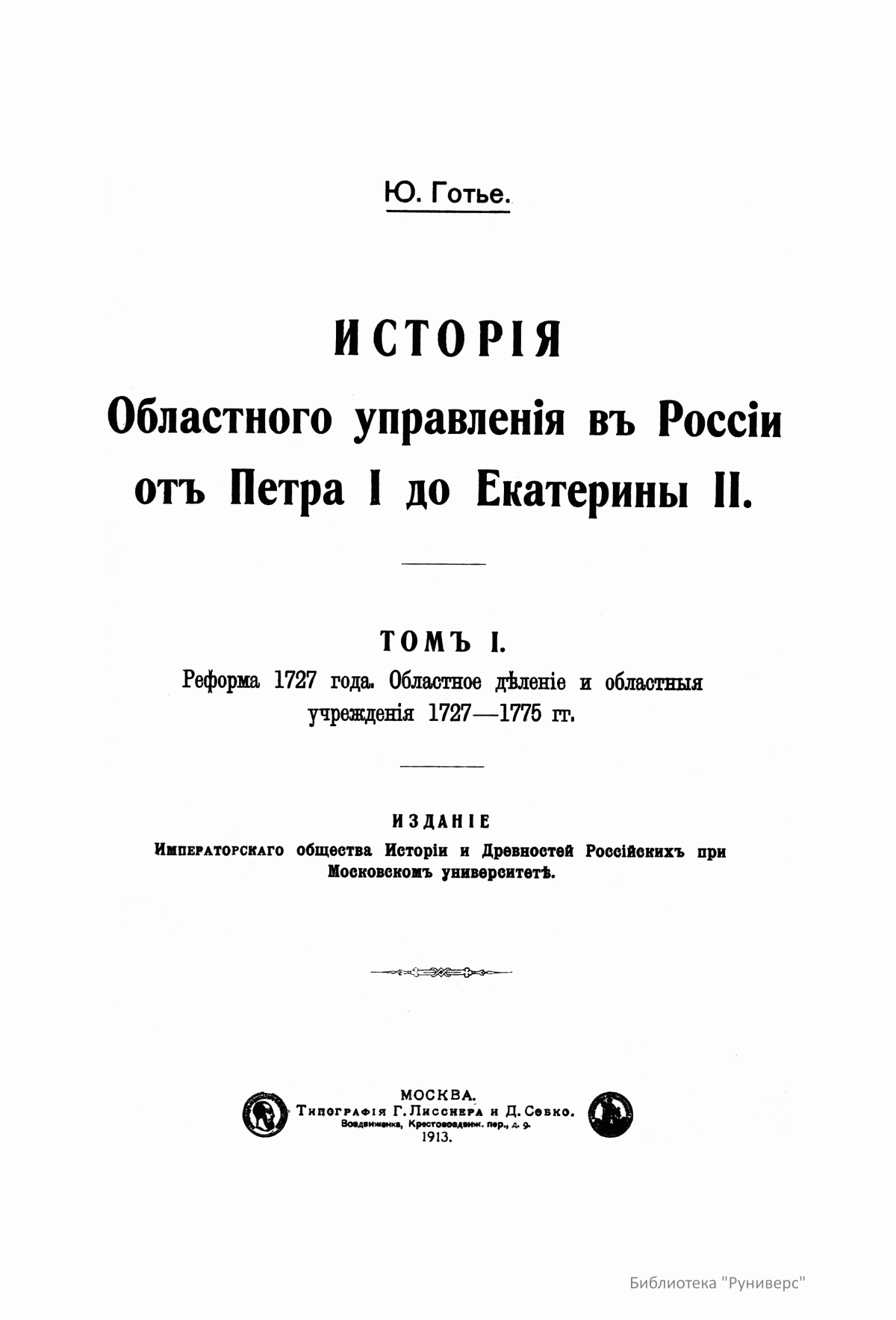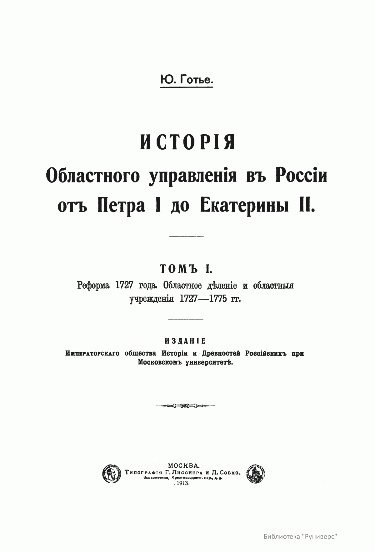 Исторiя областного управленiя въ Россiи отъ Петра I до Екатерины II