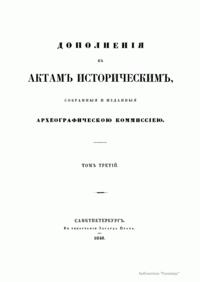 Дополнения к актам историческим, собранные и изданные археографической комиссией. Том третий