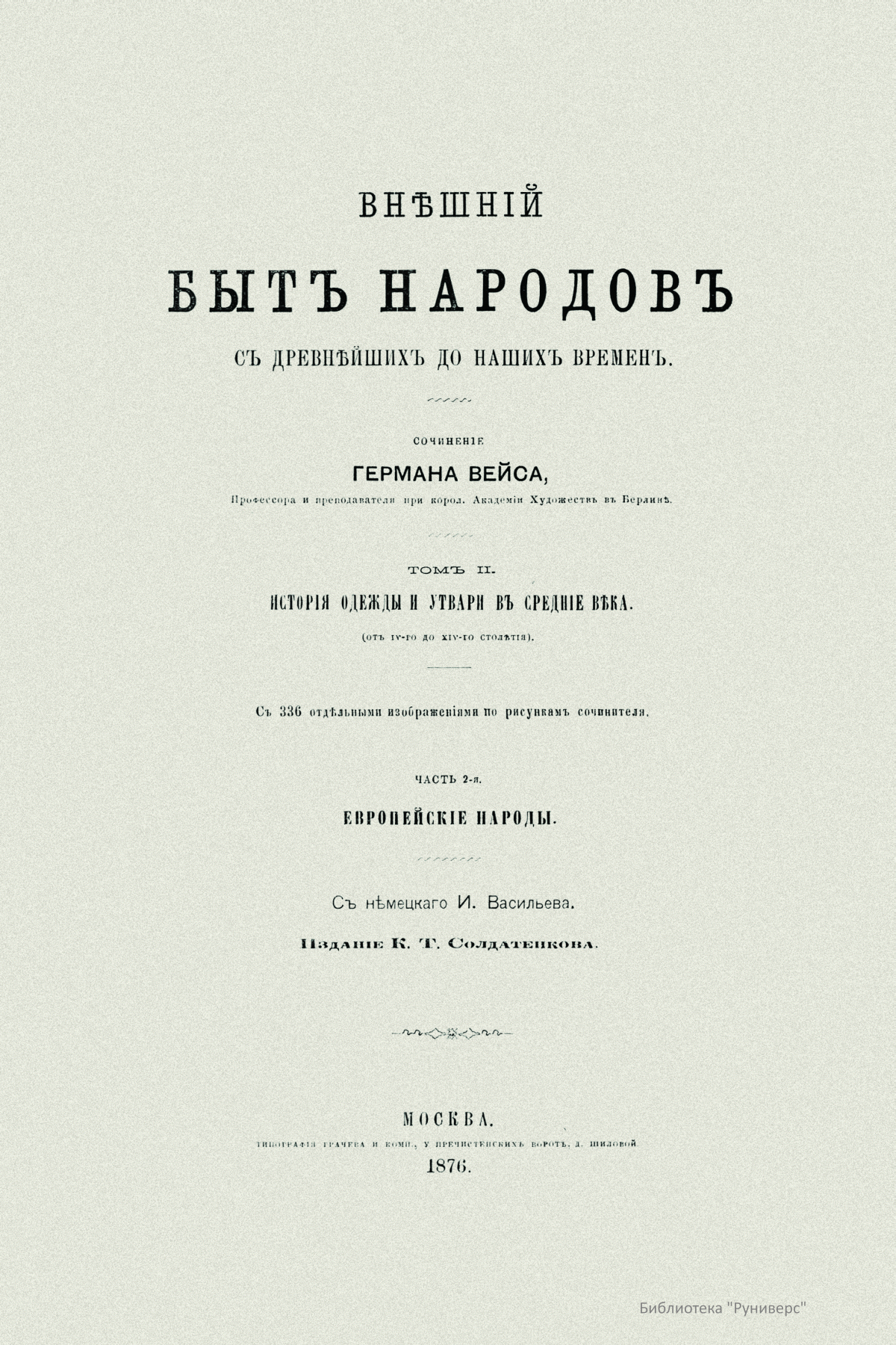 Внѣшнiй бытъ народовъ съ древнѣйшихъ до нашихъ временъ. Томъ II. Часть 2-я