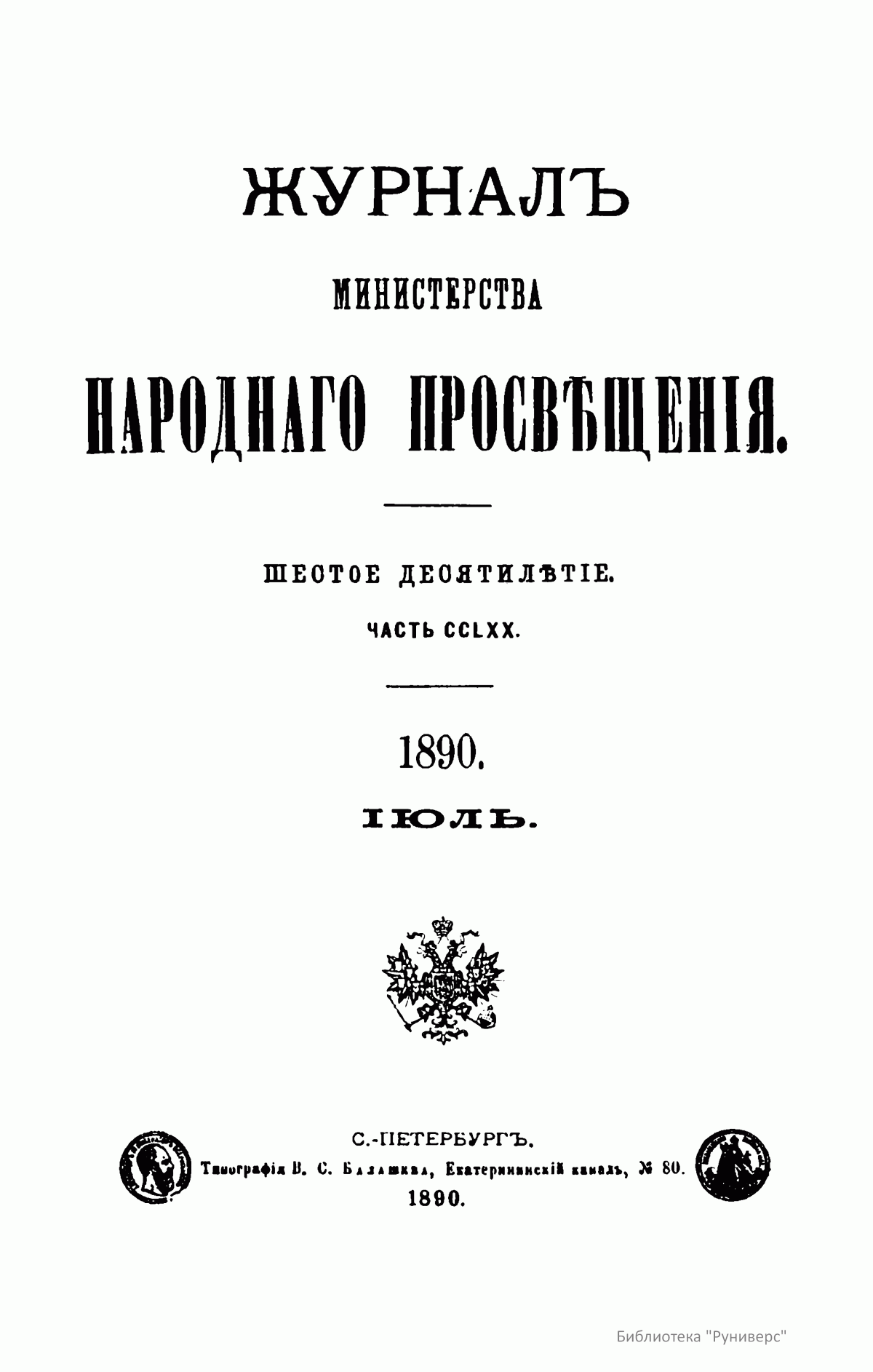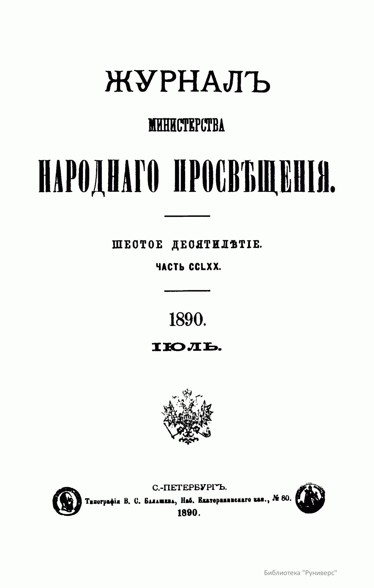 Журналъ Министерства народнаго просвѣщения. Часть CCLXX