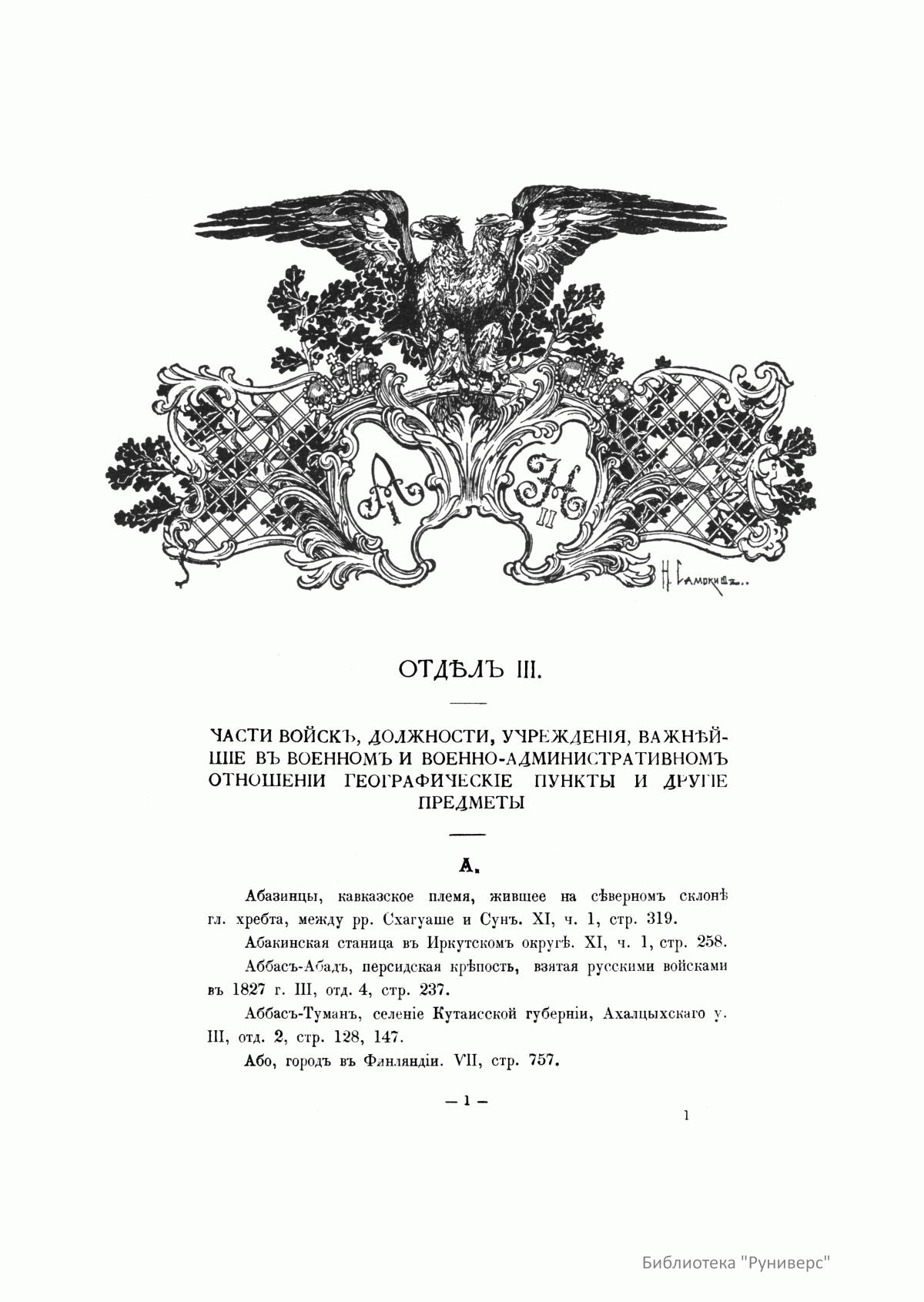 Систематический указатель к историческим очеркам столетия военного министерства. Выпуск I. Книга 2