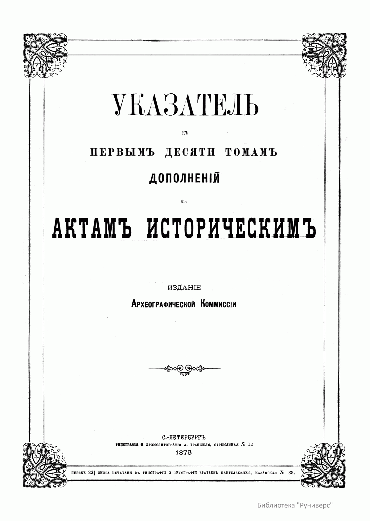 Издание археографической комиссии содержит алфавитный указатель лиц и географический указатель к первым десяти томам «Дополнений к актам историческим».
