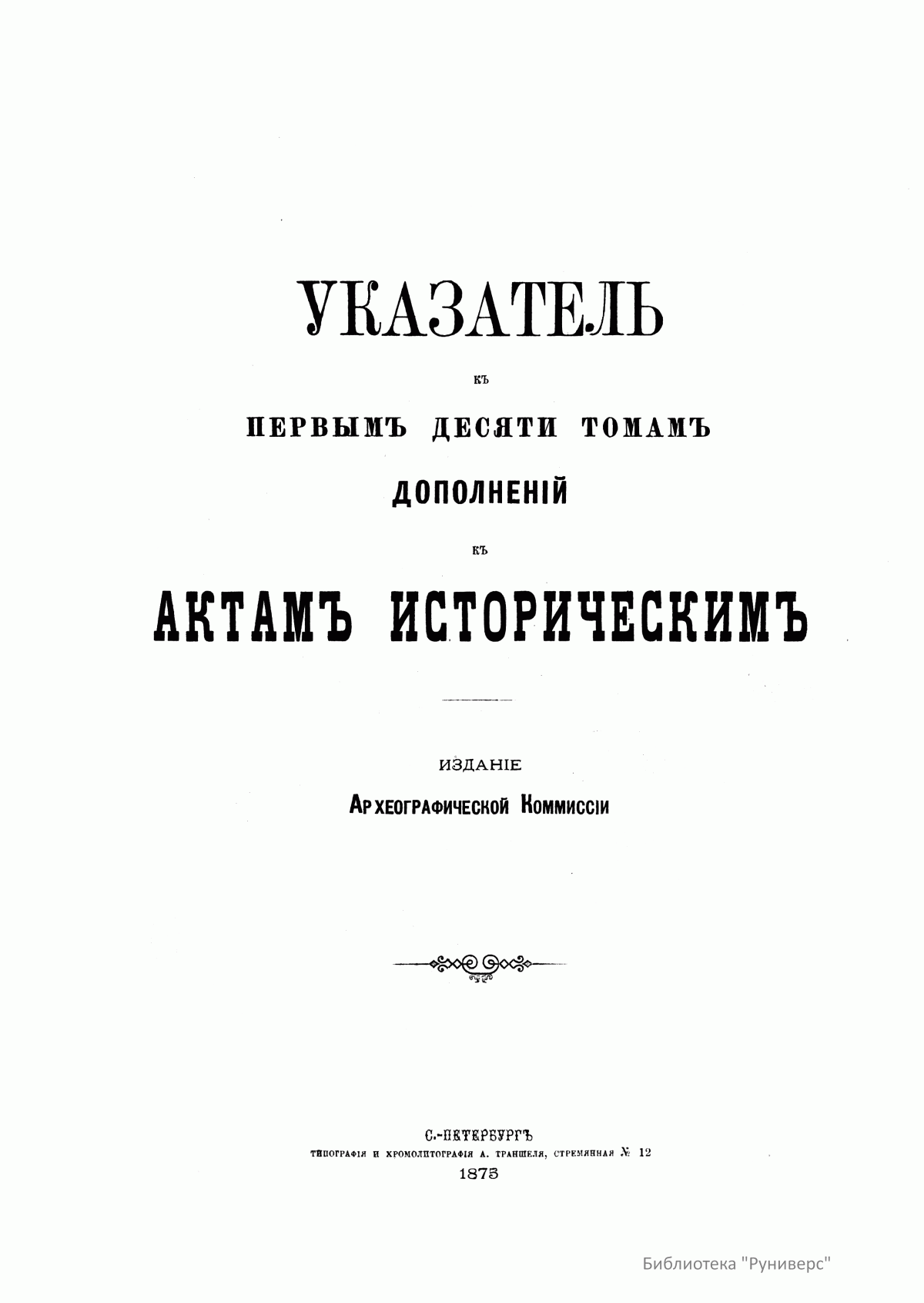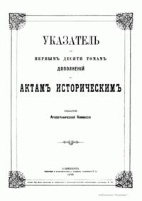 Указатель къ первымъ десяти томамъ «Дополненiй къ актамъ историческимъ»
