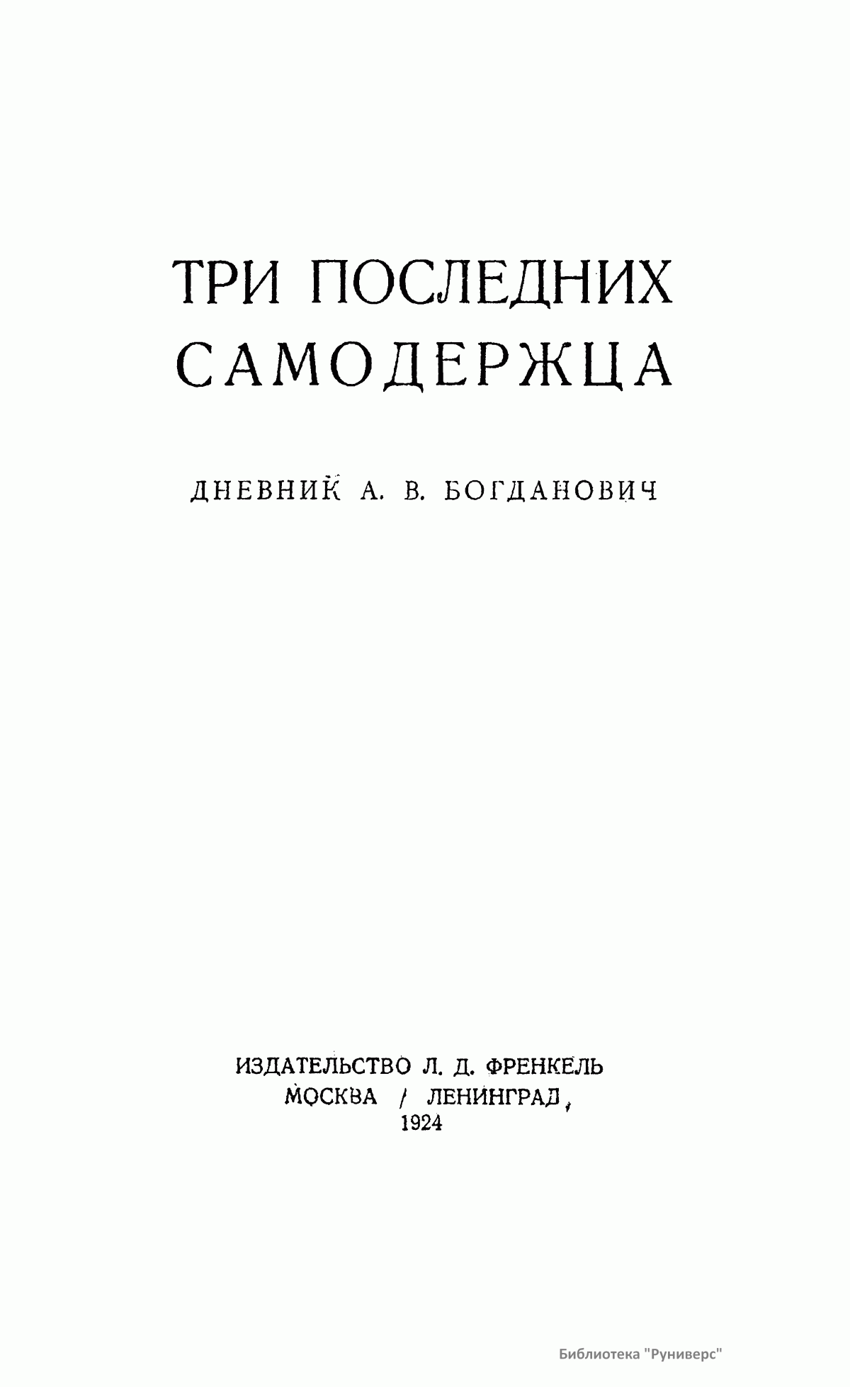 Три последних самодержца. Дневник А.В. Богданович