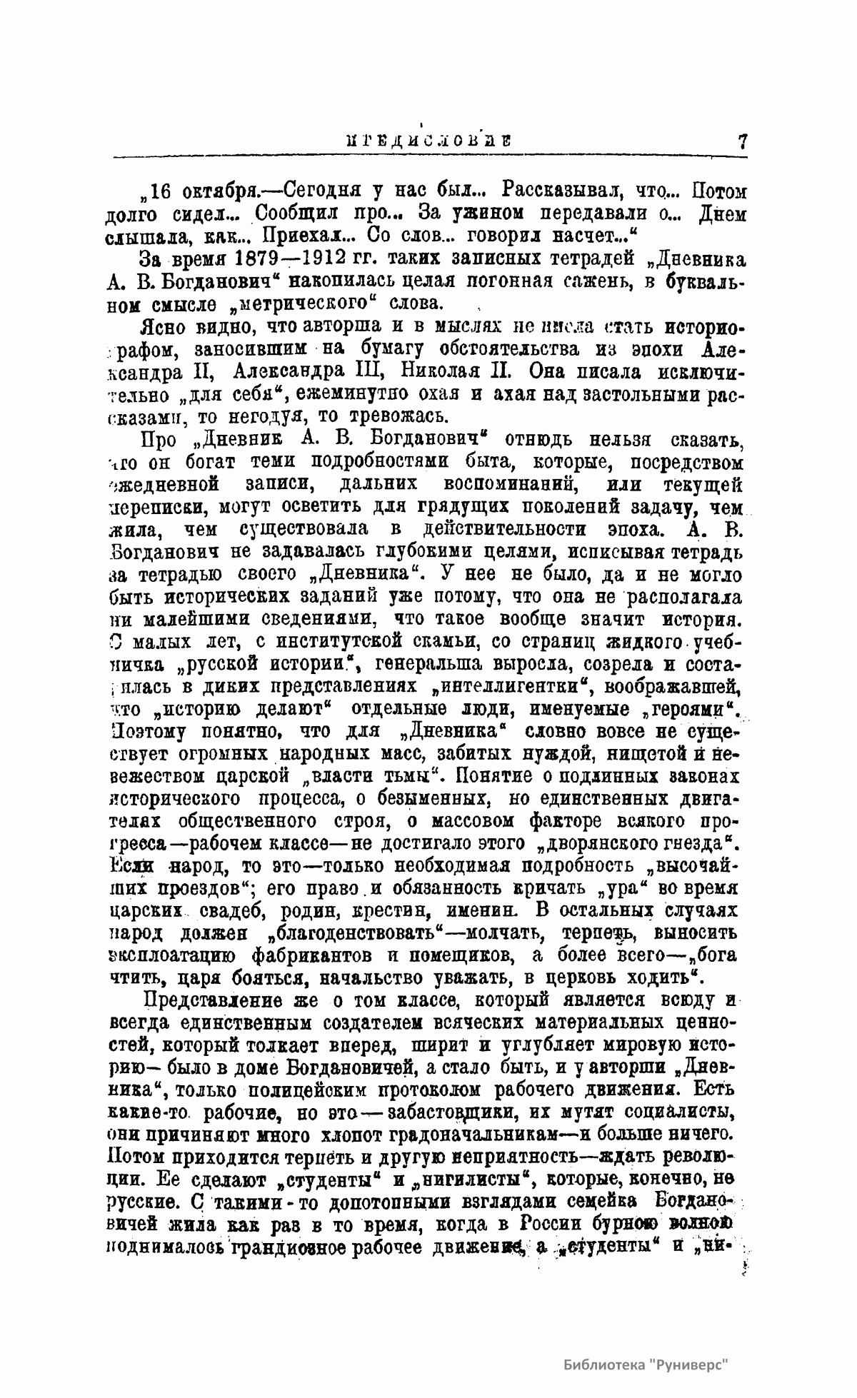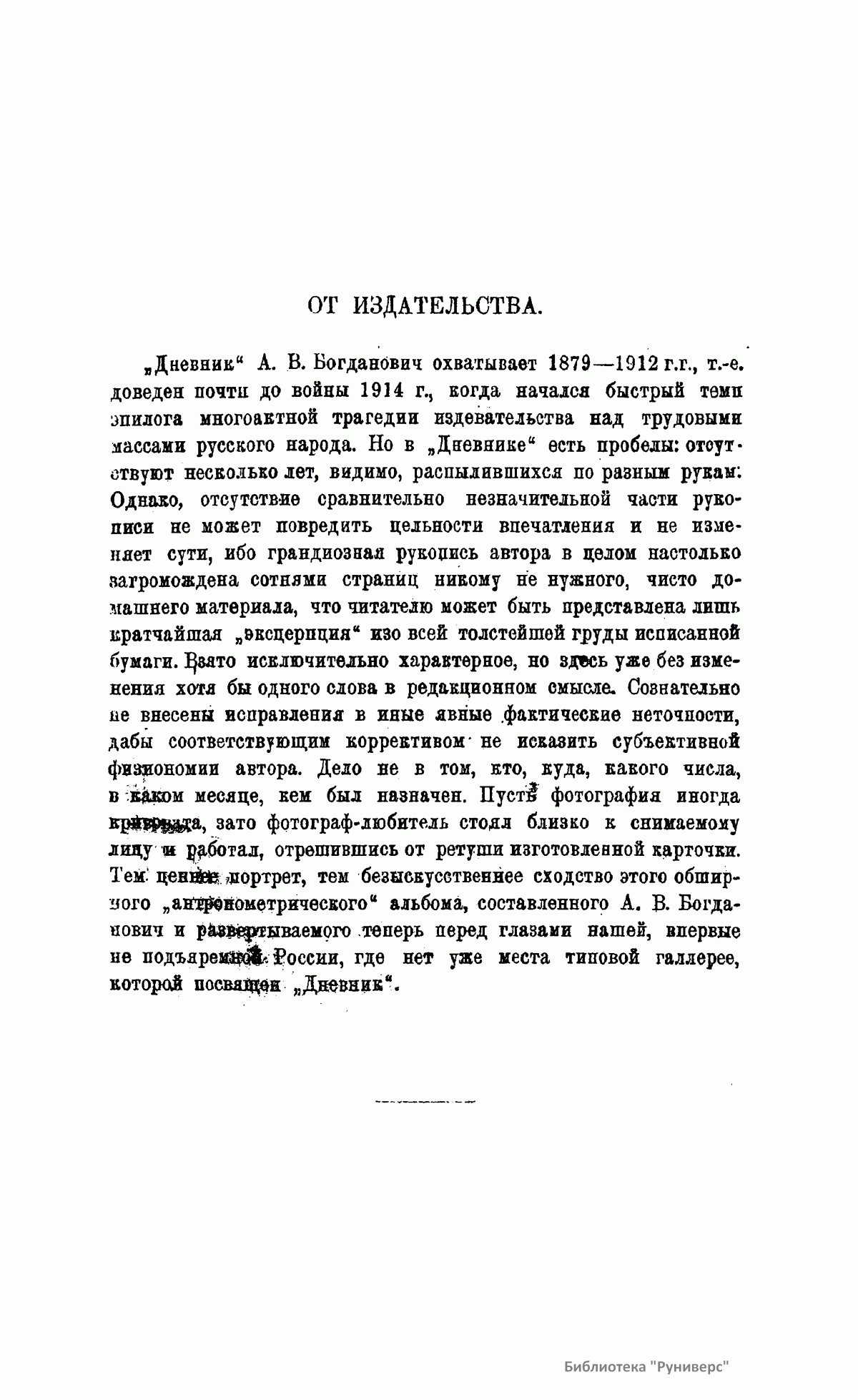 Автор книги – хозяйка светского салона Александра Викторовна Богданович – жена генерала от инфантерии писателя Евгения Васильевича Богдановича. Дом Богдановичей в Петербурге, на Исаакиевской площади, на протяжении 33 лет в царствование трех последних Романовых: Александра II, Александра III и Николая II – был открыт для многочисленных гостей. По вечерам Александра Викторовна аккуратно записывала в тетрадь, кто приезжал в дом и о чем рассказывал. Настоящее издание – образец дневника, отразившего события, обсуждавшиеся в частном доме с 1879-го по 1912 год. Дневник опубликован не полностью, содержит тенденциозное вступление, характерное для послереволюционных изданий, когда к власти в России пришли большевики.