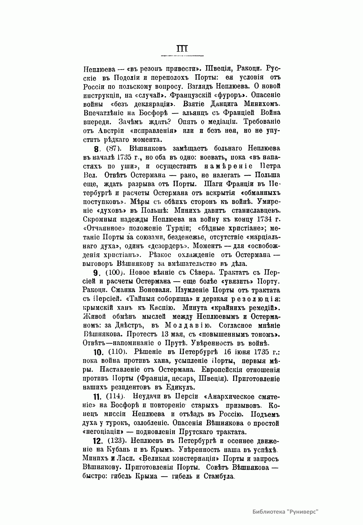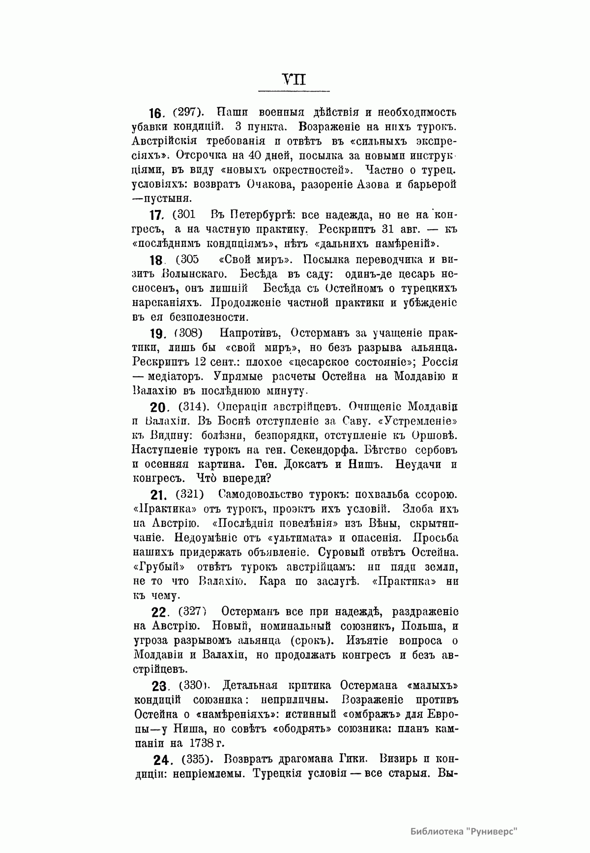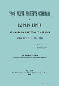В книге подробно описана русско-турецкая война 1735 – 1739 гг. и роль графа Андрея Ивановича Остермана во внешней политике русского государства. По мнению автора, заслуженного профессора Императорского Новороссийского университета, «время турецкой политики Остермана – это молодые годы в нашей истории восточного вопроса… Они дали целую политическую программу для действий в будущем». Остерман Генрих Иоганн Фридрих (Андрей Иванович), (1686 – 1747), граф, знаменитый русский дипломат, сумевший удержаться на неизменной высоте в течение нескольких царствований. Во время правления Анны Иоанновны был против разорительной войны 1735 – 1739 гг. с турками, закончившейся заключенным им белградским миром. Русско-турецкая война 1735 – 1739 гг. – война между Российской (в союзе c Австрией) и Османской империями. Война соответствовала стратегии России по обретению выхода к Черному морю и пресечению набегов крымских татар. Русские войска под командованием Миниха взяли Азов, Очаков, Хотин, Яссы, дважды занимали Крым. По мирному договору 1739 г., заключенному в Белграде, Россия оставляла за собой Азов, но обязывалась срыть все имеющиеся там укрепления. Ей запрещалось иметь флот на Черном море, а для торговли на нем должны были использоваться турецкие суда. Таким образом, задача выхода к Черному морю практически не была решена.