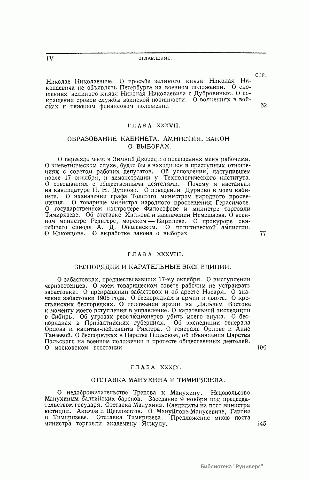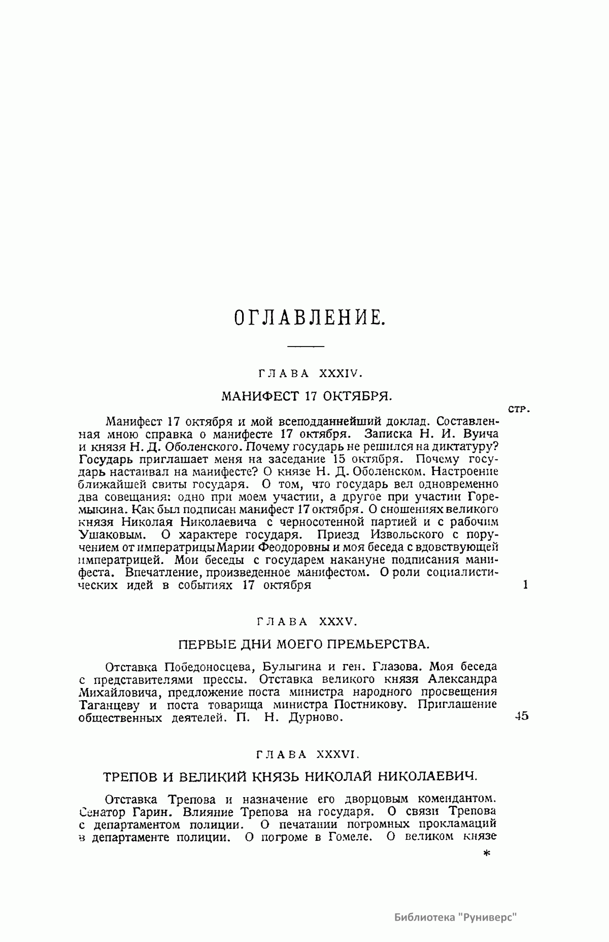Воспоминания графа, русского государственного деятеля Сергея Юльевича Витте (1849 – 1915) опубликованы в трех томах. Первый том охватывает события от смерти Александра III до 17 октября 1905 года. Второй том – от манифеста 17 октября 1905 года до убийства Столыпина в 1911 г. В третьем томе изложение доведено до смерти Александра III и включает воспоминания о детстве автора. Все три тома снабжены подробным оглавлением.
