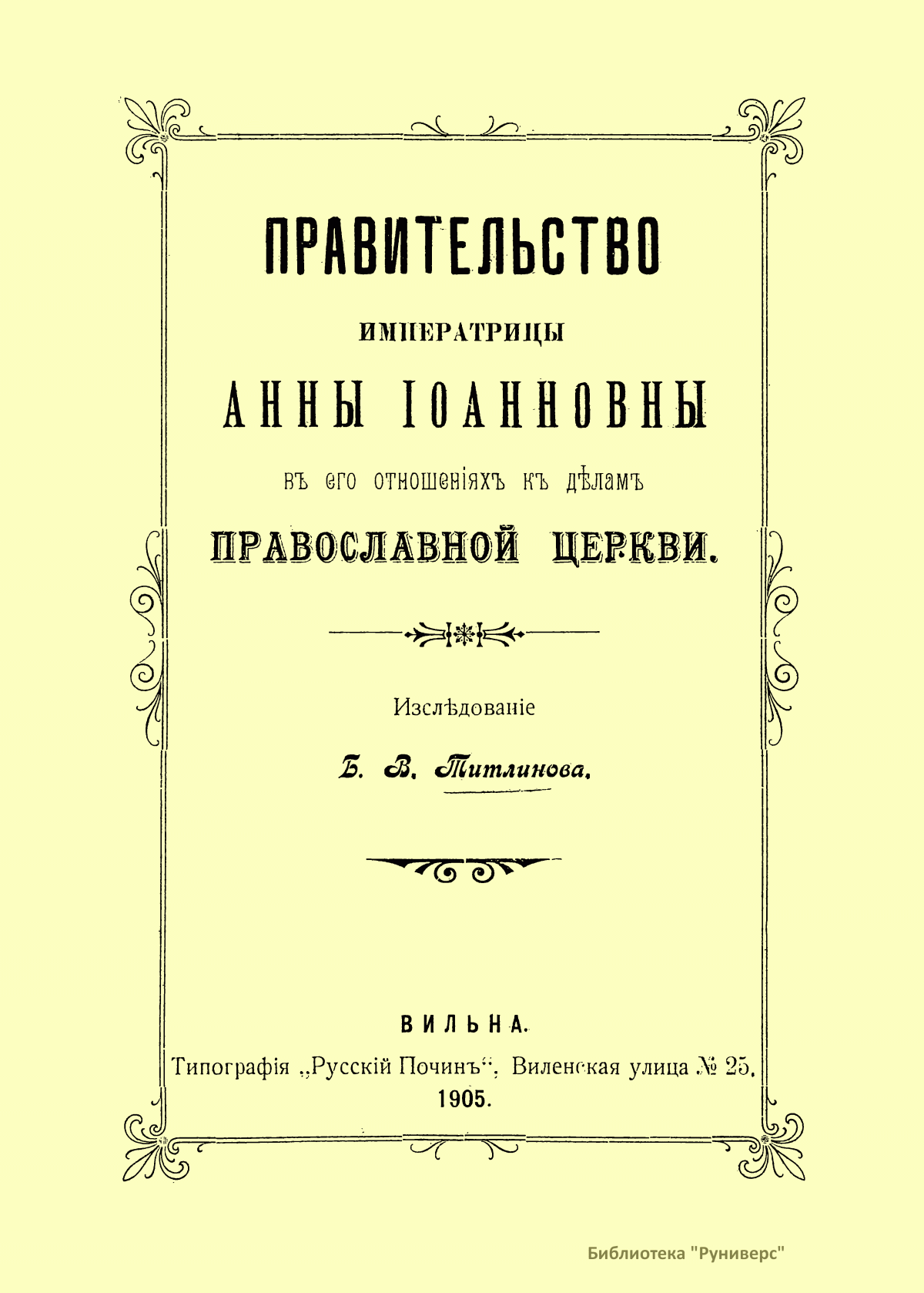 Правительство Императрицы Анны Иоанновны в его отношениях к делам Православной церкви