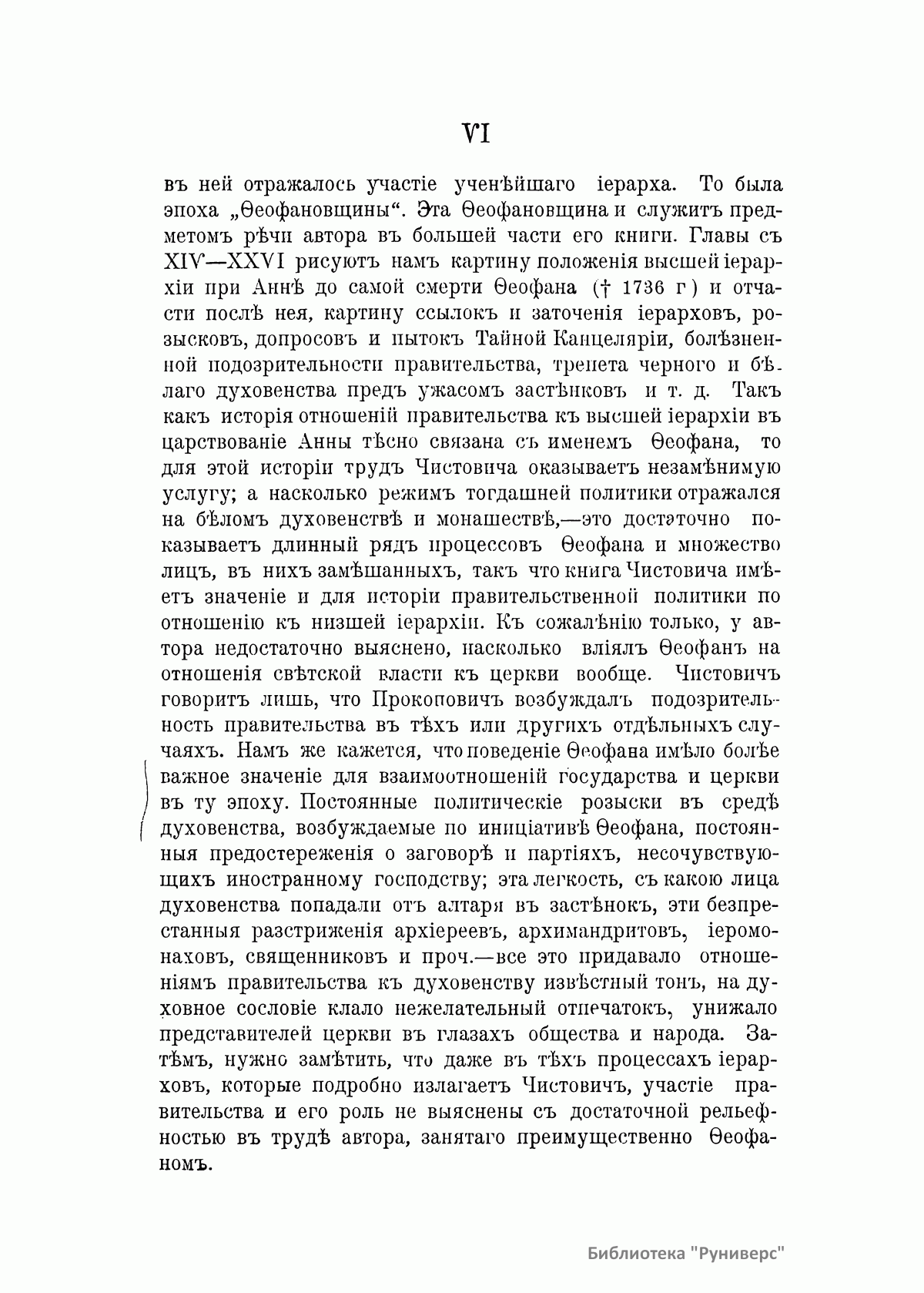 Анна Иоанновна (1693 – 1740), российская императрица с 1730 г., племянница Петра I, герцогиня курляндская с 1710 г. Возведена на престол Верховным тайным советом, стремившимся ограничить самодержавие в России. Согласившись сначала на условия «верховников», Анна уничтожила Верховный тайный совет и объявила себя самодержавною. Фактическим правителем при ней был Э.И. Бирон. Немецкое правительство, заклейменное прозвищем «бироновщины», оставило по себе недобрую память в русском общественном сознании: засилье иностранцев, разграбление богатств страны, всеобщая подозрительность, шпионаж, доносы, жестокое преследование недовольных. Цель настоящего исследования – представить полный очерк правительственных отношений к церковным делам при Анне Иоанновне. В главе «Введение» дается характеристика лиц, стоявших у власти, определяется их участие в государственной политике вообще и в церковной в частности. Здесь же выясняются основные принципы, характеризующие отношение государственной власти к церкви во время Анны Иоанновны. Дальнейшее изложение имеет задачей показать, в какие формы сложились эти отношения, как на практике проявились принципы правительственной политики в различных областях церковной жизни, как отозвались они на реальной действительности, каково было их значение для церкви. Подробное оглавление находится в конце книги.