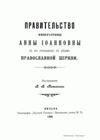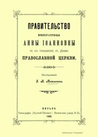 Правительство Императрицы Анны Iоанновны въ его отношенiяхъ къ дѣламъ Православной церкви