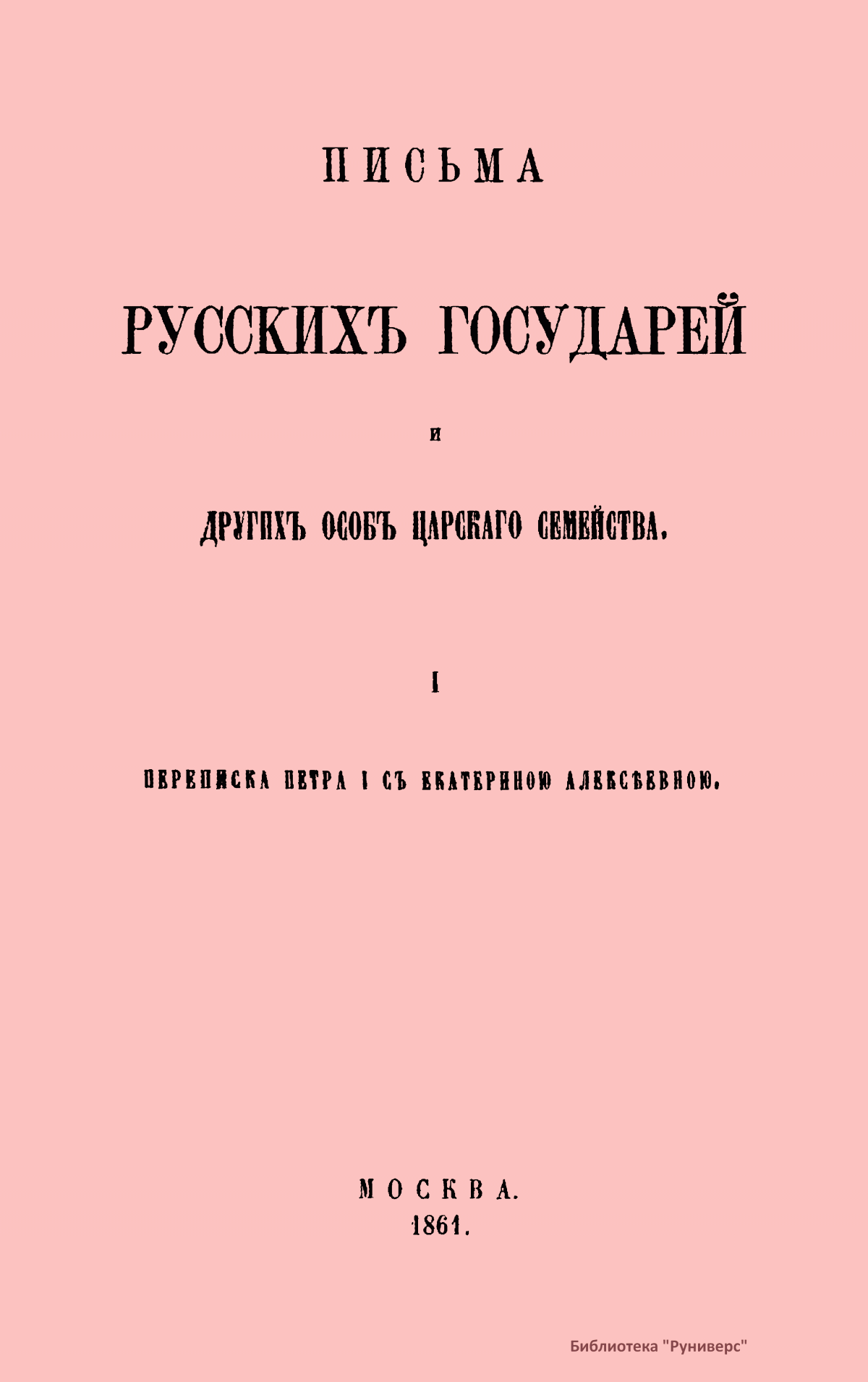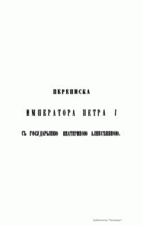I. Переписка Петра I с Екатериною Алексеевною