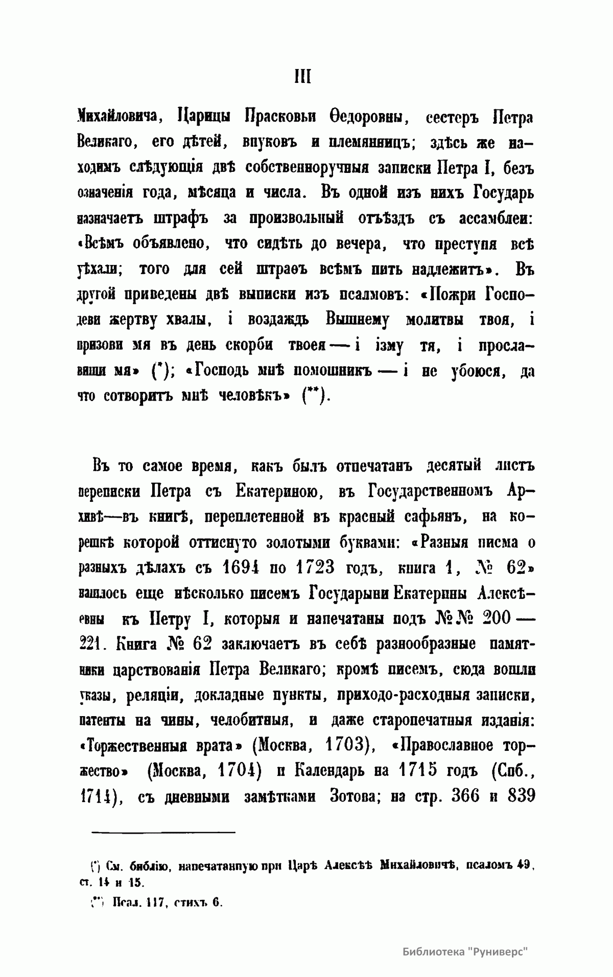 III. Переписка царевича Алексея Петровича и царицы Евдокии Федоровны