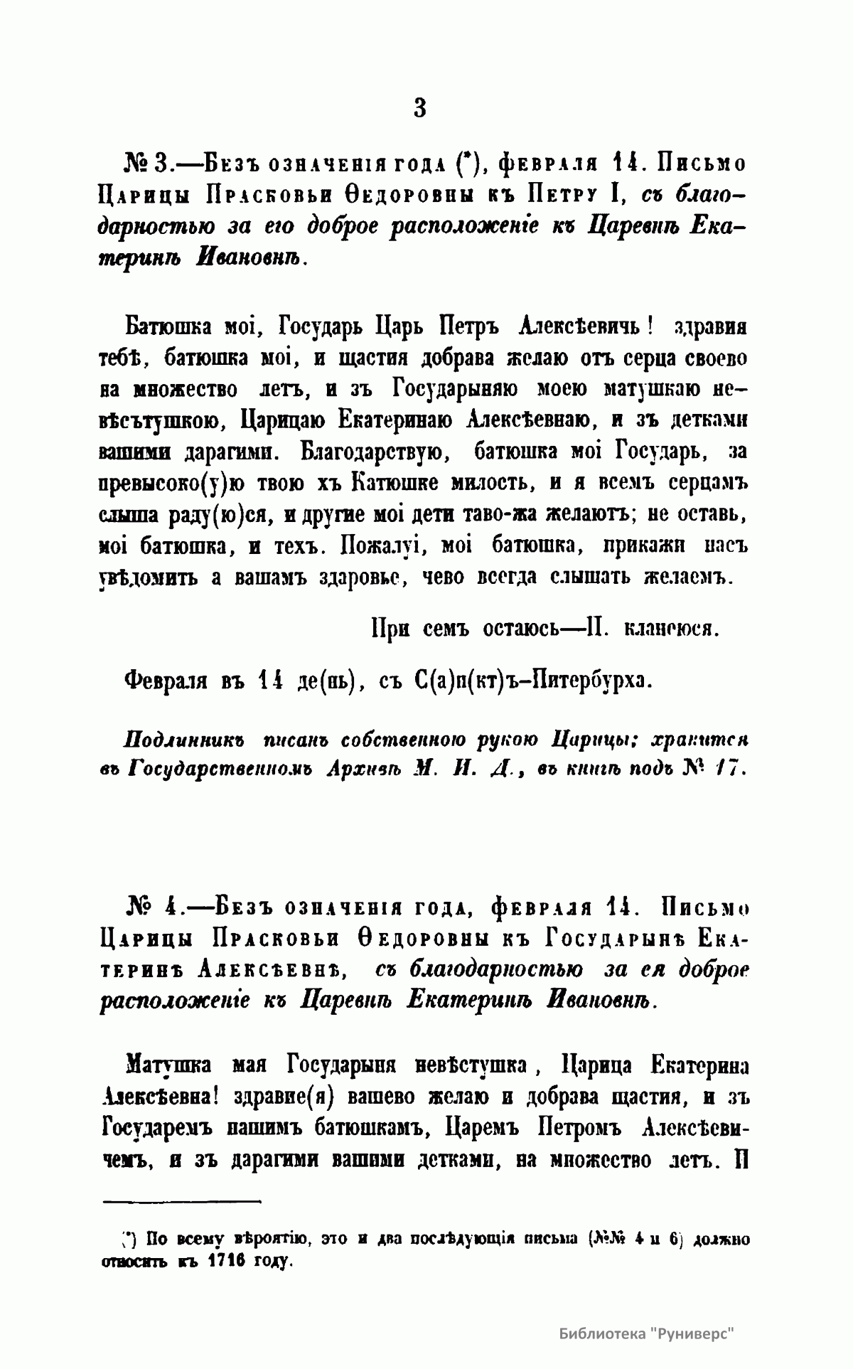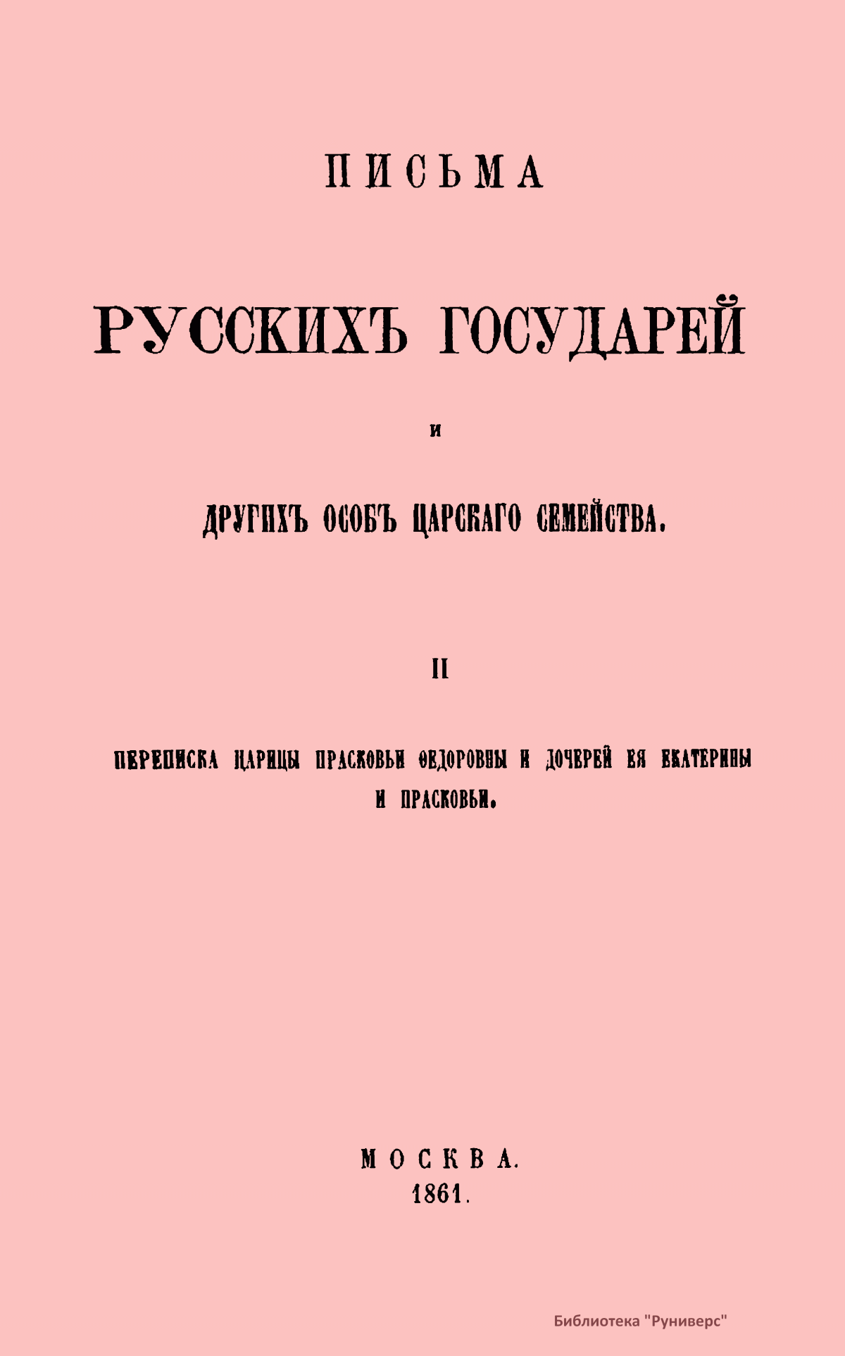 Письма русских государей и других особ царского семейства. II. Переписка царицы Прасковьи Федоровны и дочерей ее Екатерины и Прасковьи