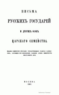 Настоящие письма изданы комиссией печатания государственных грамот и договоров, состоящей при Московском главном архиве министерства иностранных дел. Кроме материалов Главного архива комиссия пользовалась собраниями Государственного архива С.-Петербурга, Императорской публичной библиотеки и Румянцевского музея. Письма русских государей и других особ царского семейства представляют собой любопытный исторический памятник.