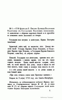 I. Переписка Петра I с Екатериною Алексеевною