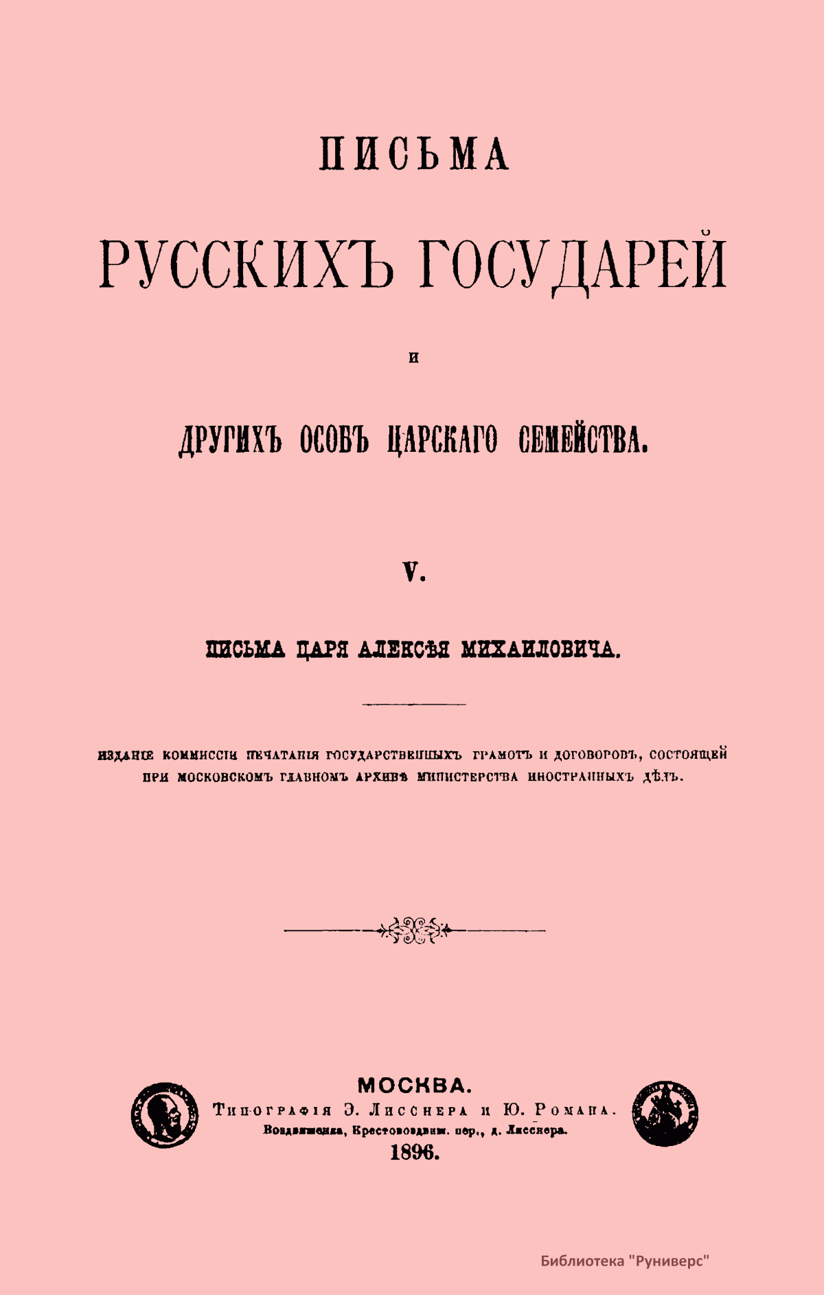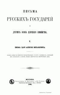 Письма русских государей и других особ царского семейства. V. Письма царя Алексея Михайловича