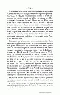 Настоящие письма изданы комиссией печатания государственных грамот и договоров, состоящей при Московском главном архиве министерства иностранных дел. Кроме материалов Главного архива комиссия пользовалась собраниями Государственного архива С.-Петербурга, Императорской публичной библиотеки и Румянцевского музея. Письма русских государей и других особ царского семейства представляют собой любопытный исторический памятник.