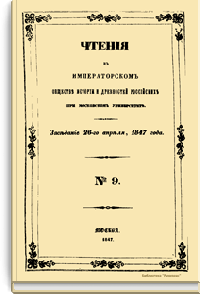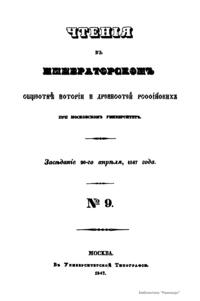 Чтенiя въ Императорскомъ Обществѣ Исторiи и Древностей Россiйскихъ при Московскомъ Университетѣ. Годъ второй. №9