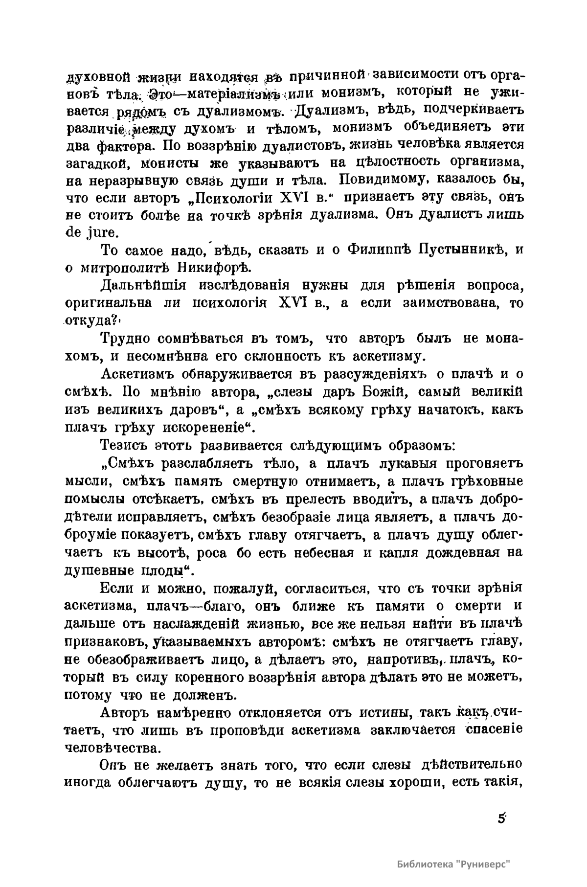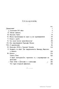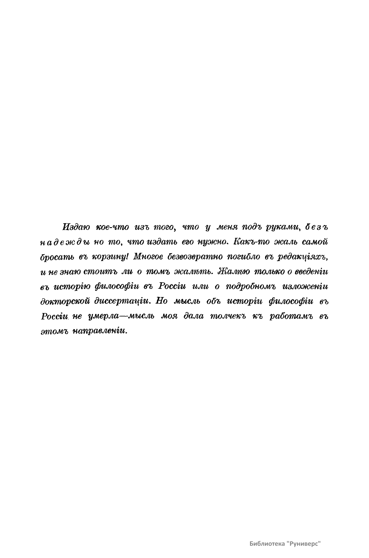 В данной работе автор продолжает свои попытки воссоздания истории отечественной мысли. Книга посвящена проблемам российской и зарубежной психологии и философии XVI-XVIII вв., исследованию источников, выявлению влияния, становления терминологию Автор впервые среди российских исследователей дал краткий пересказ содержания трактата «О человечестем естестве, о видимем и невидимем», который по целому ряду признаков считается самостоятельным древне-русским произведением («Психология XVI века»). В своей работе она описывает и анализирует ряд источников по древнерусской философии («Тайная тайных»), а также дает обзор существенных моментов современной ей мысли (Ницше, прагматизм), касается ряда этических проблем.