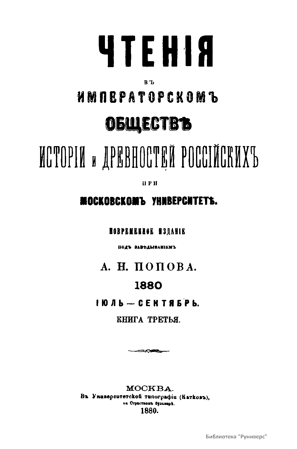 Чтения в Императорском Обществе Истории и Древностей Российских при Московском Университете. 1880. Июль-Сентябрь. Книга третья
