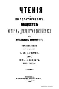 Чтенiя въ Императорскомъ Обществѣ Исторiи и Древностей Россiйскихъ при Московскомъ Университетѣ. 1880. Iюль-Сентябрь. Книга третья