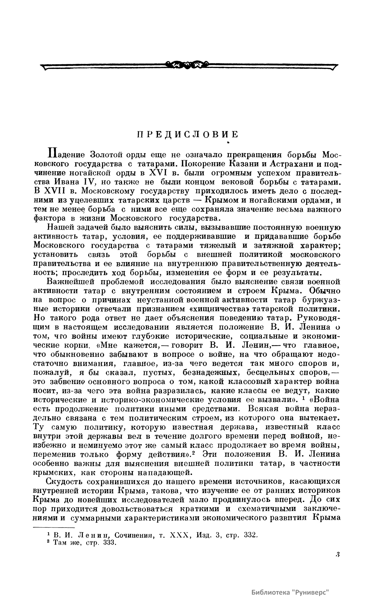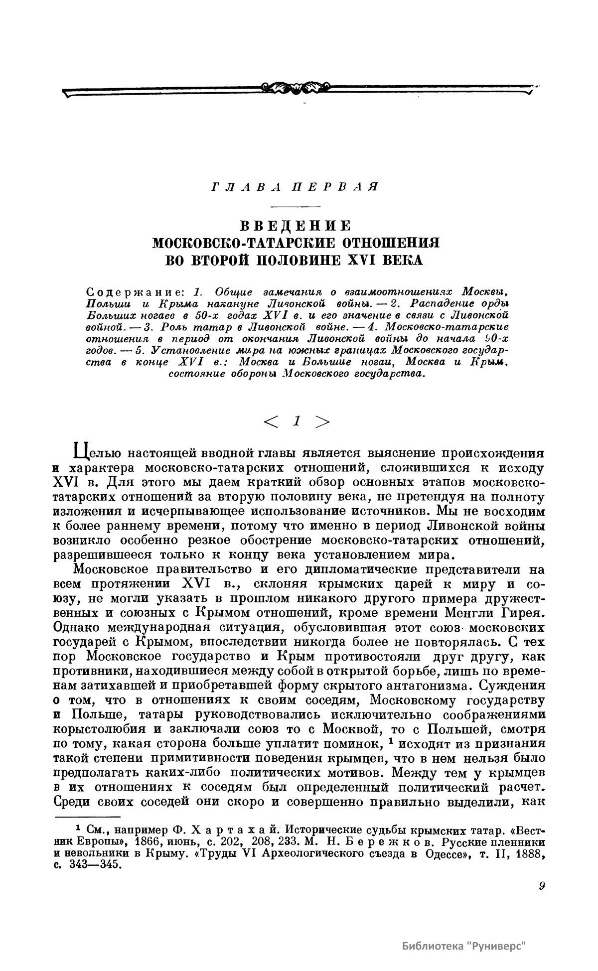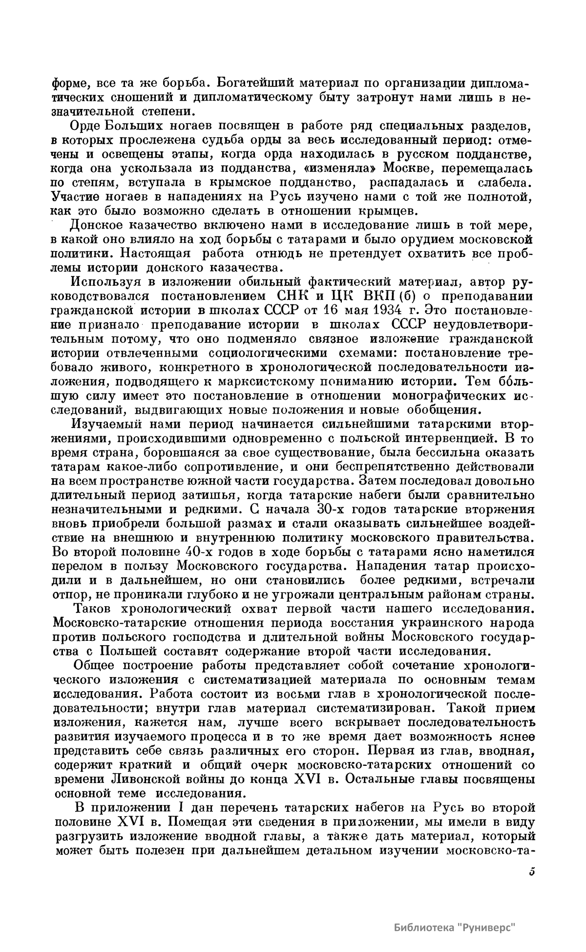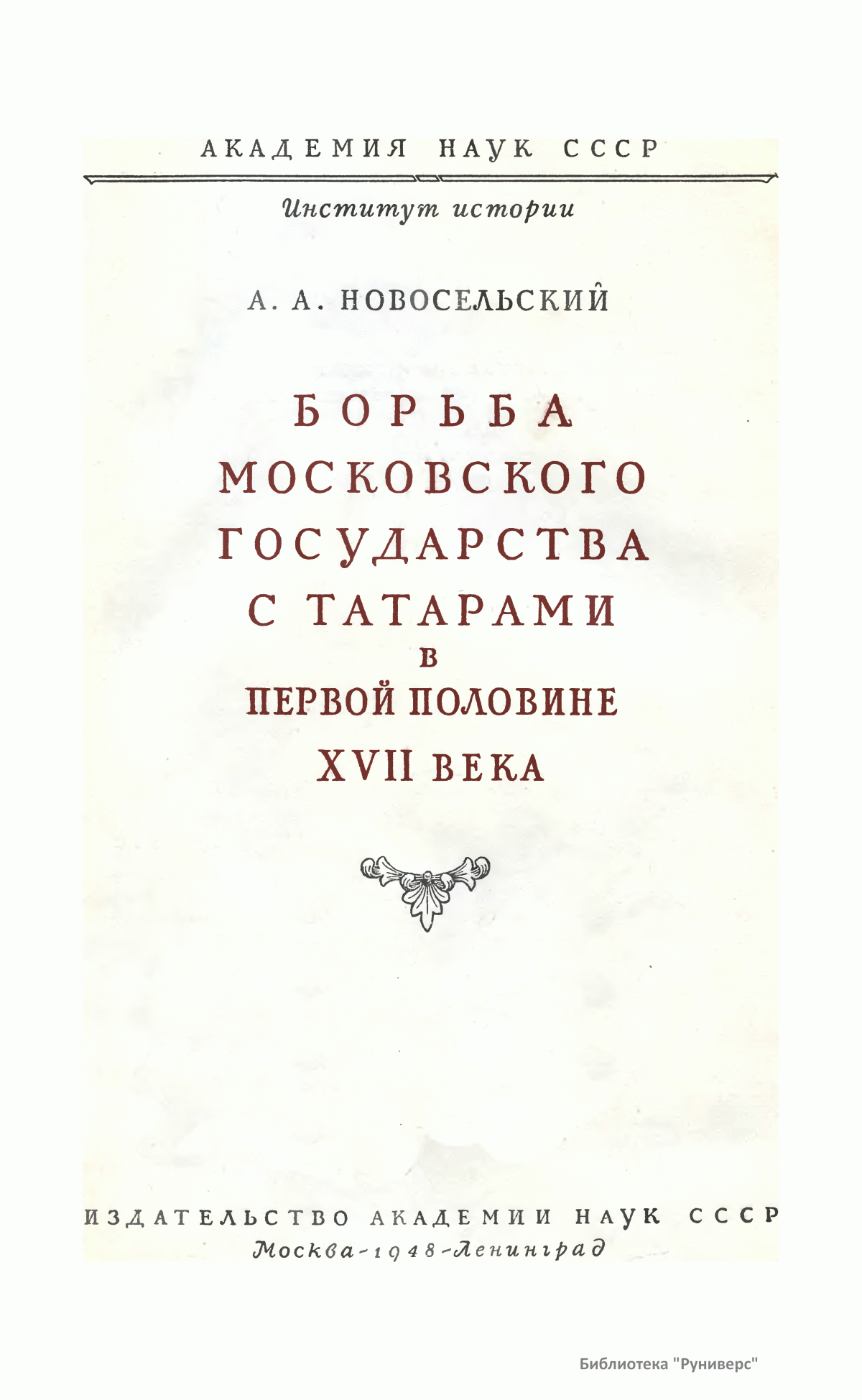 В XVII веке Московскому государству приходилось иметь дело с последними из уцелевших татарских царств – Крымом и ногайскими ордами. Борьба с ними была важным фактором в жизни Московского государства. Автор исследования ставит перед собой задачу выяснить силы, вызывавшие постоянную военную активность татар, условия, ее поддерживавшие и придававшие борьбе Московского государства тяжелый и затяжной характер; установить связь этой борьбы с внешней политикой московского правительства и ее влияние на внутреннюю правительственную деятельность; проследить ход борьбы, изменение ее форм и ее результаты. Работа состоит из восьми глав в хронологической последовательности. Первая глава содержит общий очерк московско-татарских отношений со времен Ливонской войны до конца XVI века. Остальные главы посвящены основной теме исследования. Подробное оглавление находится в конце книги.
