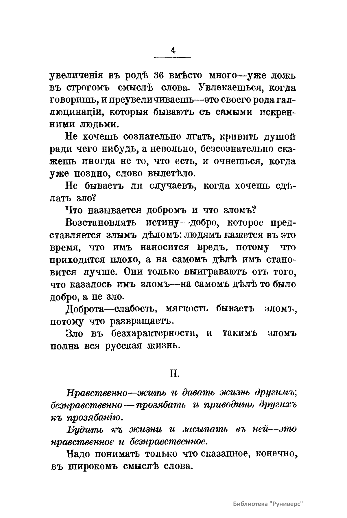 Автор данной работы основала в России "Этическое общество" (1910), а свою собственную философскую позицию определяла как “этический идеализм”. В брошюре Безобразова рассматривает различные моральные категории: нравственность, правда, лицемерие, добро и зло; пытается определить, что такое счастье и можно ли прийти к нему через страдание. Автор призывает "попристальнее всмотреться в русскую жизнь", и как в других ее сочинениях, красной нитью проходит мысль о любви к родине: "Глубоко безнравственно не любить Россию в тяжкие дни ее жизни, и давно пора осилить зло и воспрянуть духом, объединившись в общей работе". Также в работе рассматриваются этические воззрения Фр. Ницше и