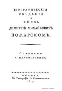 Бiографическiя свѣдѣнія о князѣ Дмитріѣ Михайловичѣ Пожарскомъ