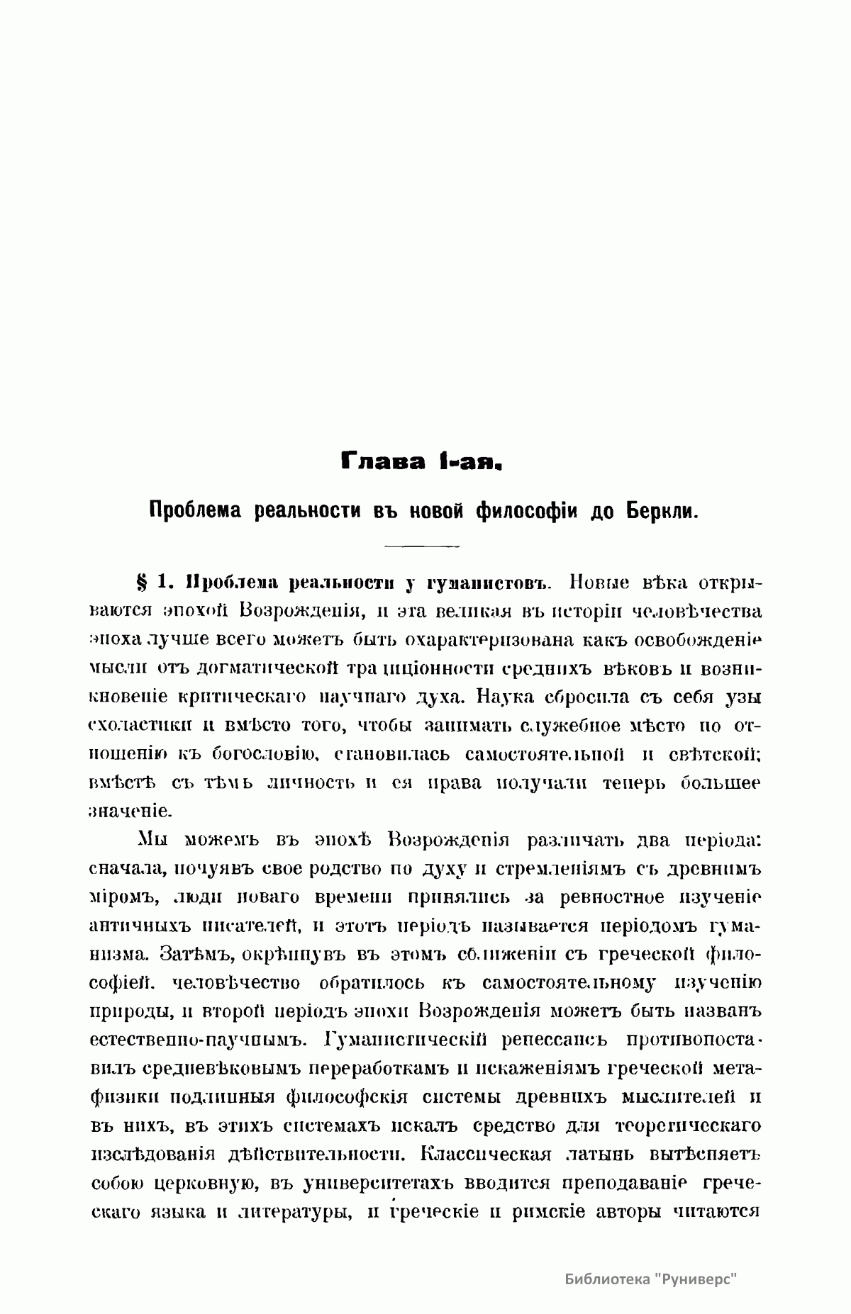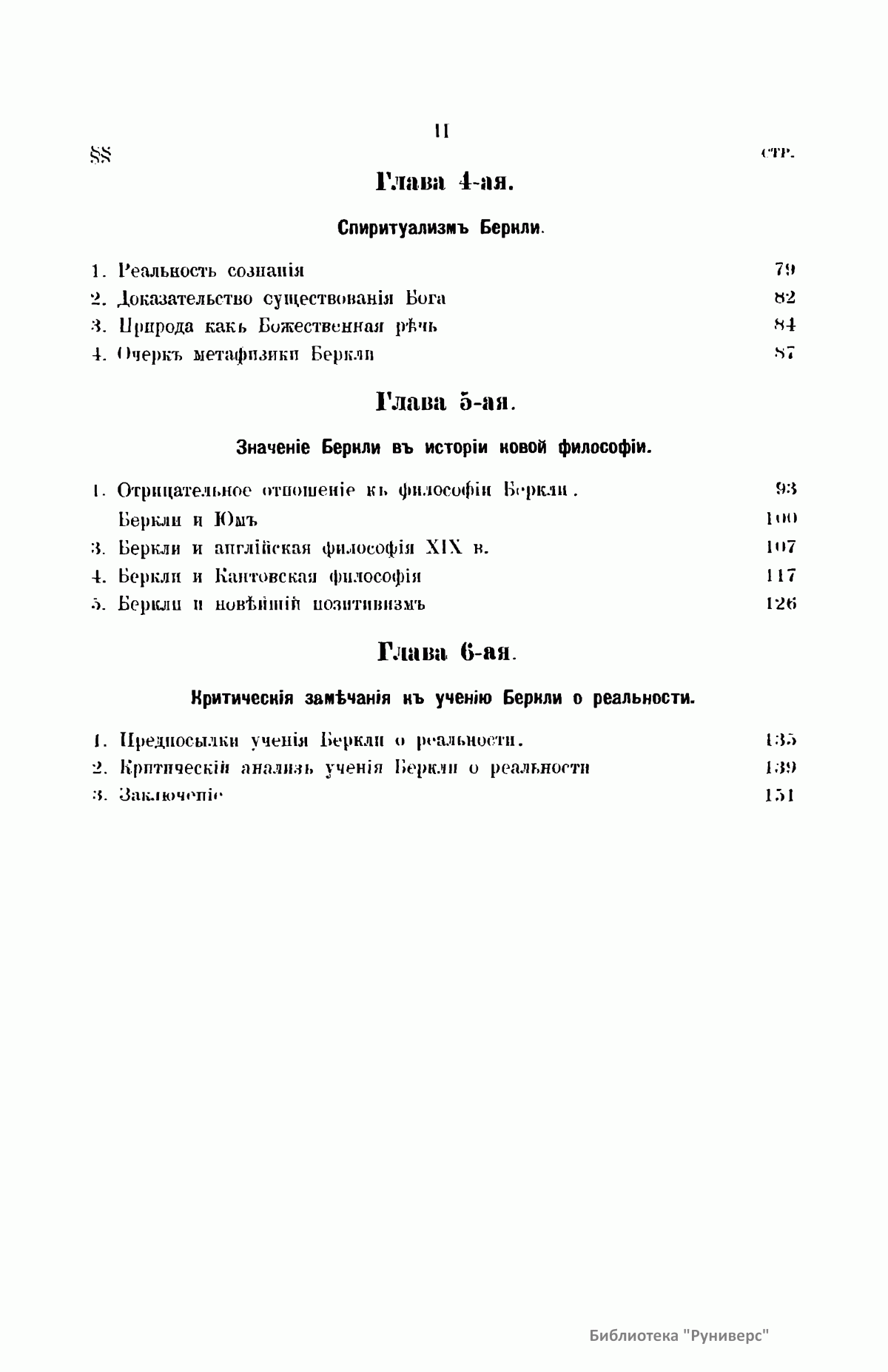 Автор излагает историю проблемы реальности в философии до Беркли, критически рассматривает основные идеи и теории последнего, характеризует его значение в истории европейской философии. Он рассматривает систему воззрений Беркли в контексте эпохи, в сопоставлении с широким кругом онтологических проблем. Исследование было подготовлено в рамках работы Психологической семинарии при университете Св. Владимира в Киеве.