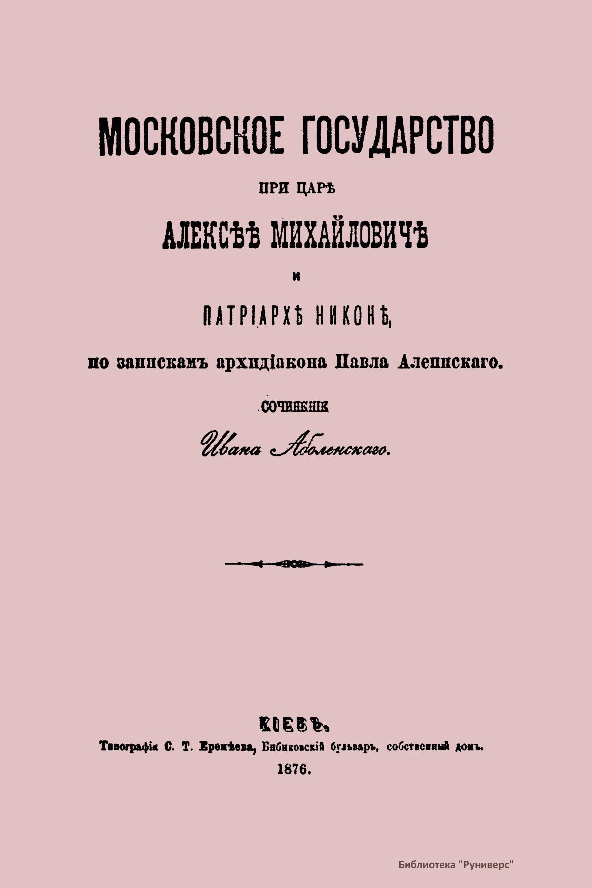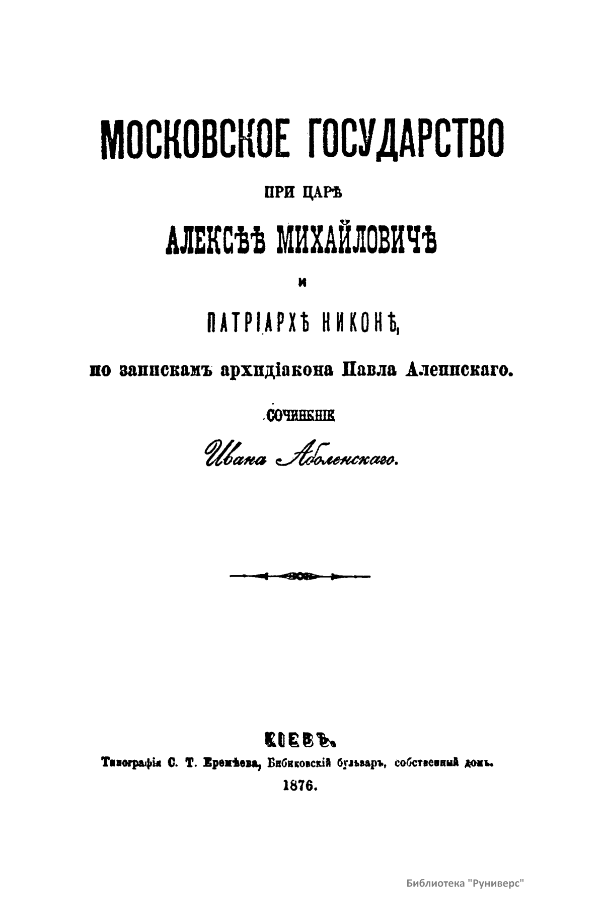 Московское государство при царѣ Алексѣѣ Михайловичѣ и Патрiарх Никонѣ, по запискамъ архидiякона Павла Алеппскаго