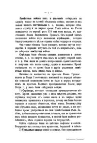 Брошюра издана в 1883 г. к двухсотлетнему юбилею русского регулярного войска. Начало регулярному войску в России (т.е. такому войску, «которое правильно обучено, одинаково одето и вооружено; которое составляется из людей, знающих военное дело и способных по команде одного лица стройно и беспрекословно исполнять приказ»), основанием «Потешных солдат», положил император Петр Великий. Старейшим регулярным полком считается лейб-гвардии Преображенский. С него и ведется начало регулярного войска в России. От «Потешных» ведут свое начало лейб-гвардии Семеновский полк и 1-я батарея лейб-гвардии 1-й Артиллерийской бригады. Автор рассматривает следующие темы: русское войско до Петра I (5); царь Петр I (9); Потешные. Первое регулярное войско (15); доблести первого регулярного войска (28).Юбилейное издание украшено виньетками художника Панова. Также здесь представлены портреты Петра I и первого российского солдата Бухвостова.