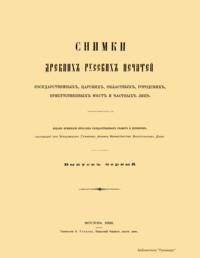 Снимки древнихъ русскихъ печатей государственныхъ, царскихъ, областныхъ, городскихъ, присутственныхъ мѣстъ и частныхъ лицъ