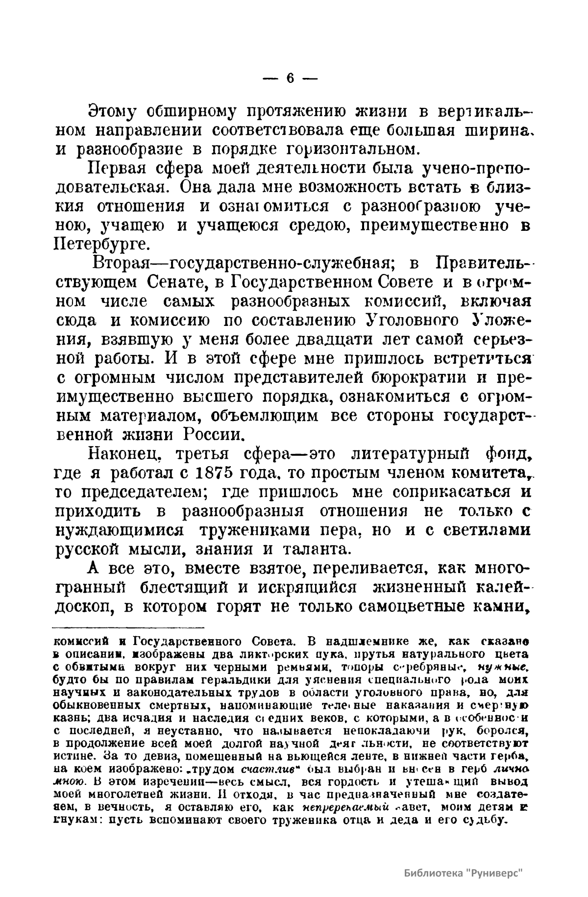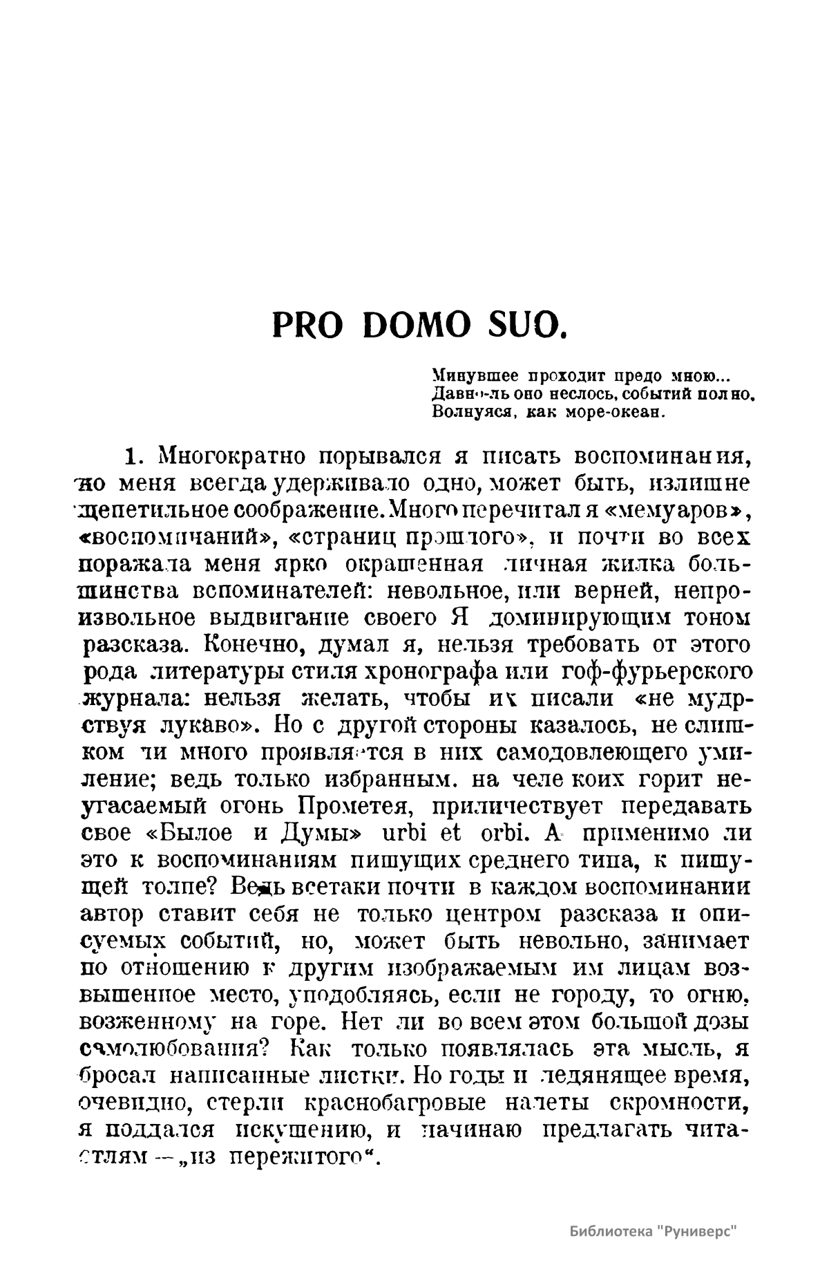 Автор вспоминает о своем участии в обсуждении проектов переустройства государственного уклада России 1905 – 1906 гг. В первый выпуск очерка вошли: петергофское совещание в июле 1906 г. о проекте Государственной думы; первое царскосельское совещание по пересмотру избирательного права на основании манифеста 17 октября 1905 г.; комиссия грфа Сольского об изменении учреждения Государственного совета в 1905 г.; второе царскосельское совещание по пересмотру высших законодательных учреждений в феврале 1906 г.; третье царскосельское совещание по реформе основных законов при графе Витте.