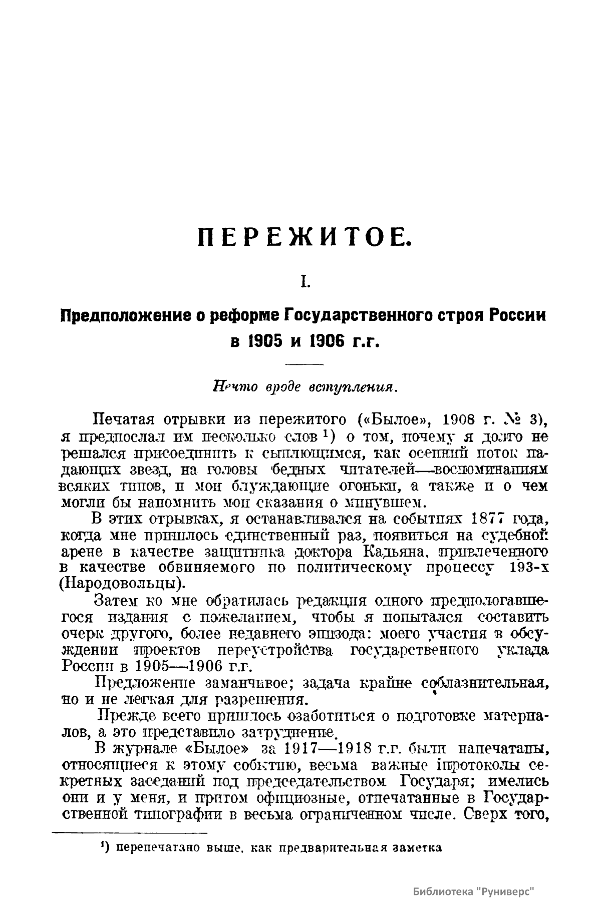 Пережитое. Учреждение Государственной Думы в 1905-1906 гг.