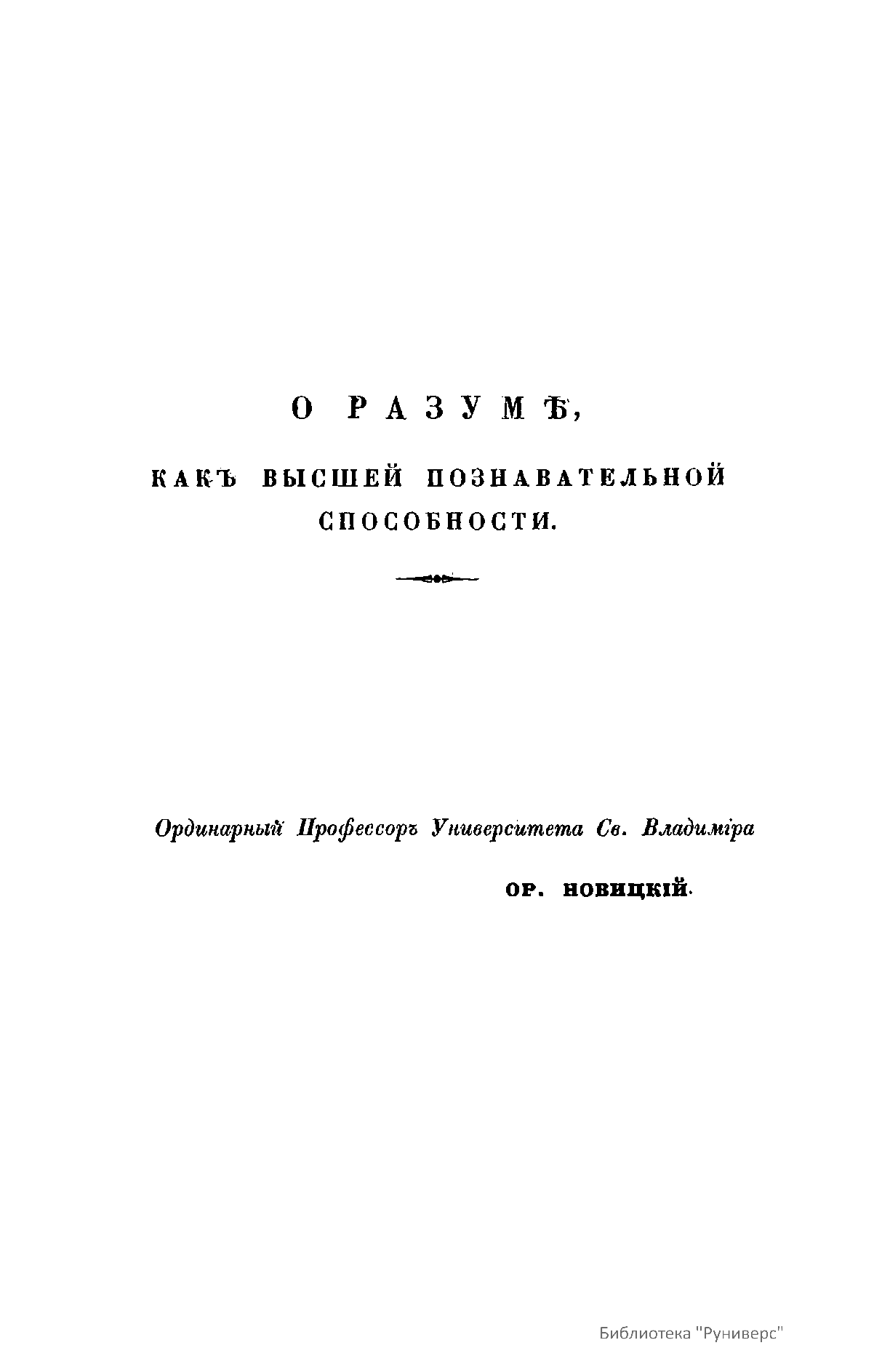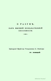 О разумѣ, какъ высшей познавательной способности