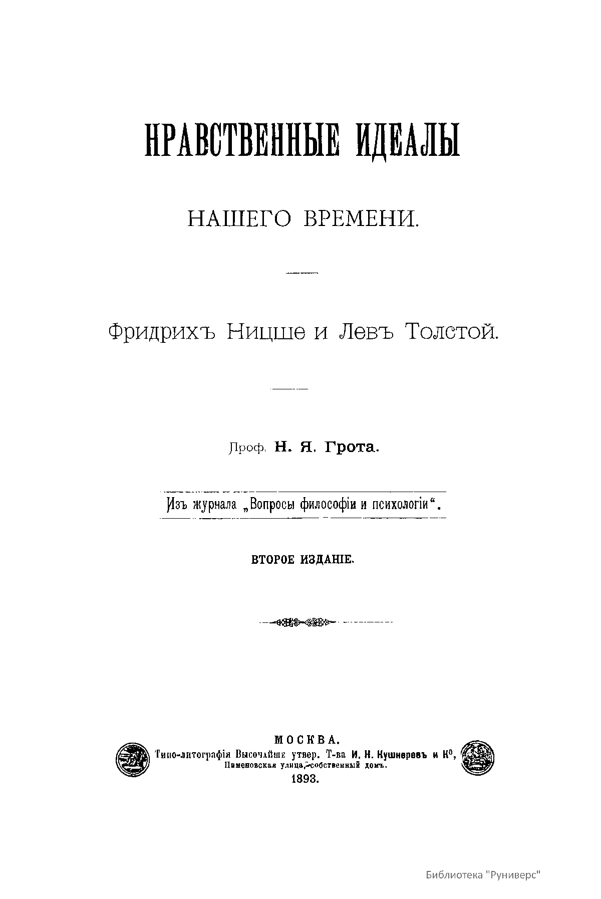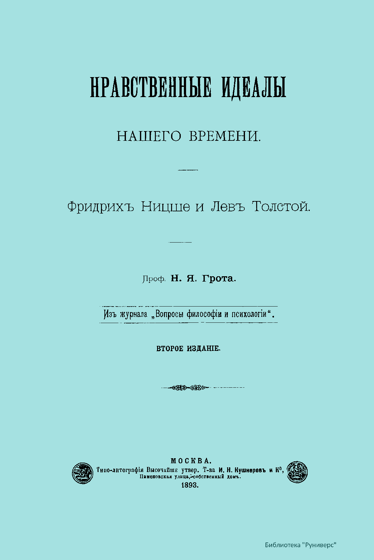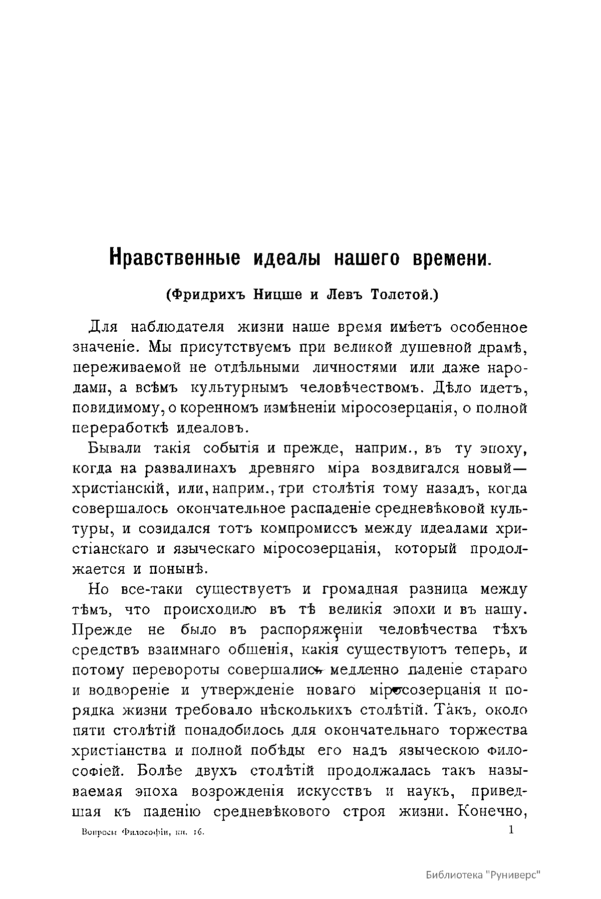 Нравственные идеалы нашего времени. Фридрихъ Ницше и Левъ Толстой