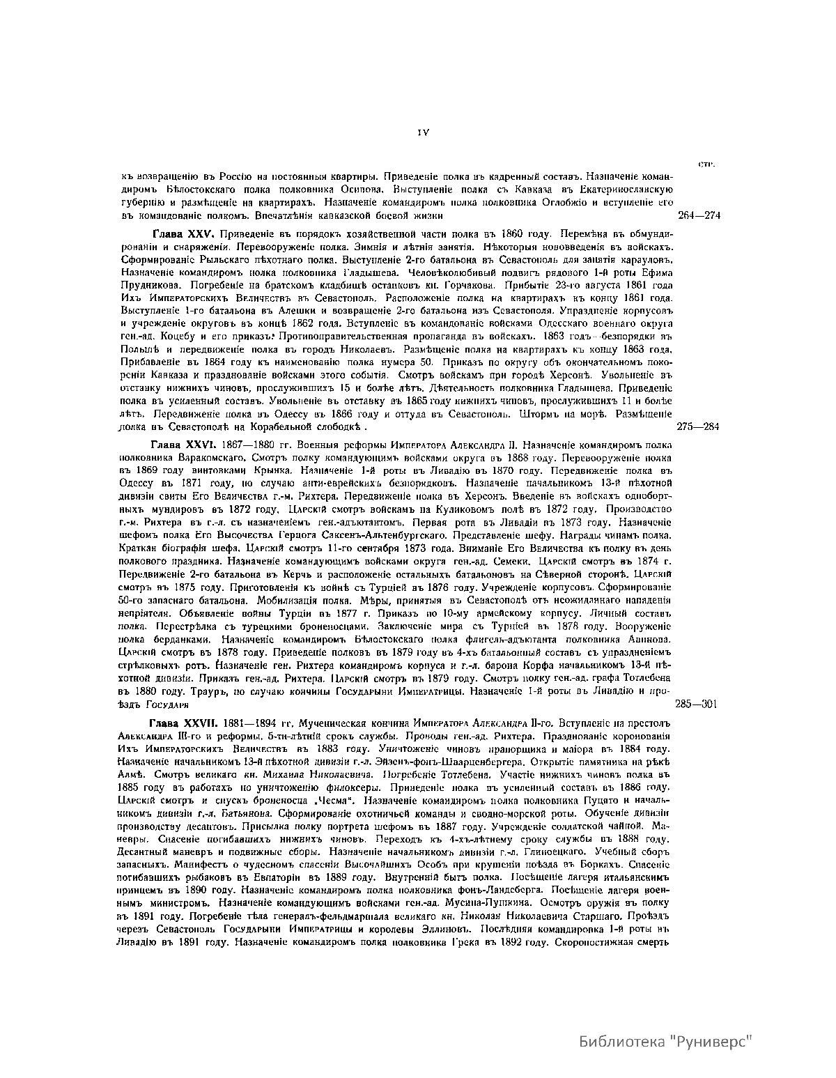 Обстоятельная история составлена капитаном Е. П. Николаевым и имеет целью представить более или менее полную и верную картину жизни полка. Перечень материалов, служивших пособием для автора, содержится в приложении № 96. Исторические материалы приводятся в строго хронологическом порядке. Оглавление с подробным содержанием каждой главы находится в начале книги. К книге прилагаются портреты, рисунки, карты, планы, схемы. Полк сформирован 12 мая 1807 г. в трехбатальонном составе из трех рот разных гарнизонных батальонов в уважение храброй защиты ими Данцига. Назван Белостокским мушкетерским полком. 22 февраля 1811 г. назван Белостокским пехотным полком. 14 февраля 1831 г. 3-й батальон отделен на сформирование Модлинского пехотного полка, взамен его поступил 3-й батальон Суздальского пехотного полка. 28 января 1833 г. присоединен 2-й батальон 47-го егерского полка, и полк приведен в шестибатальонный состав. 23 февраля 1845 г. присоединен один батальон Суздальского пехотного полка, а 16 декабря два батальона в полном составе отчислены на сформирование Ставропольского полка. 10 марта 1854 г. полк приведен в восьмибатальонный состав. 9 февраля 1856 г. сформированы стрелковые роты, а 23 августа полк приведен в трехбатальонный состав: 5-й, 6-й, 7-й и 8-й батальоны расформированы, а 4-й отделен под названием 4-го резервного батальона Белостокского пехотного полка (6 апреля 1863 г. из 4-го резервного батальона сформирован Белостокский резервный полк, названный 13 августа Рыльским пехотным полком). 25 марта 1864 г. полк назван 50-м пехотным Белостокским, а 30 августа 1873 г. – 50-м пехотным Белостокским Его Высочества герцога Саксен-Альтенбургского.