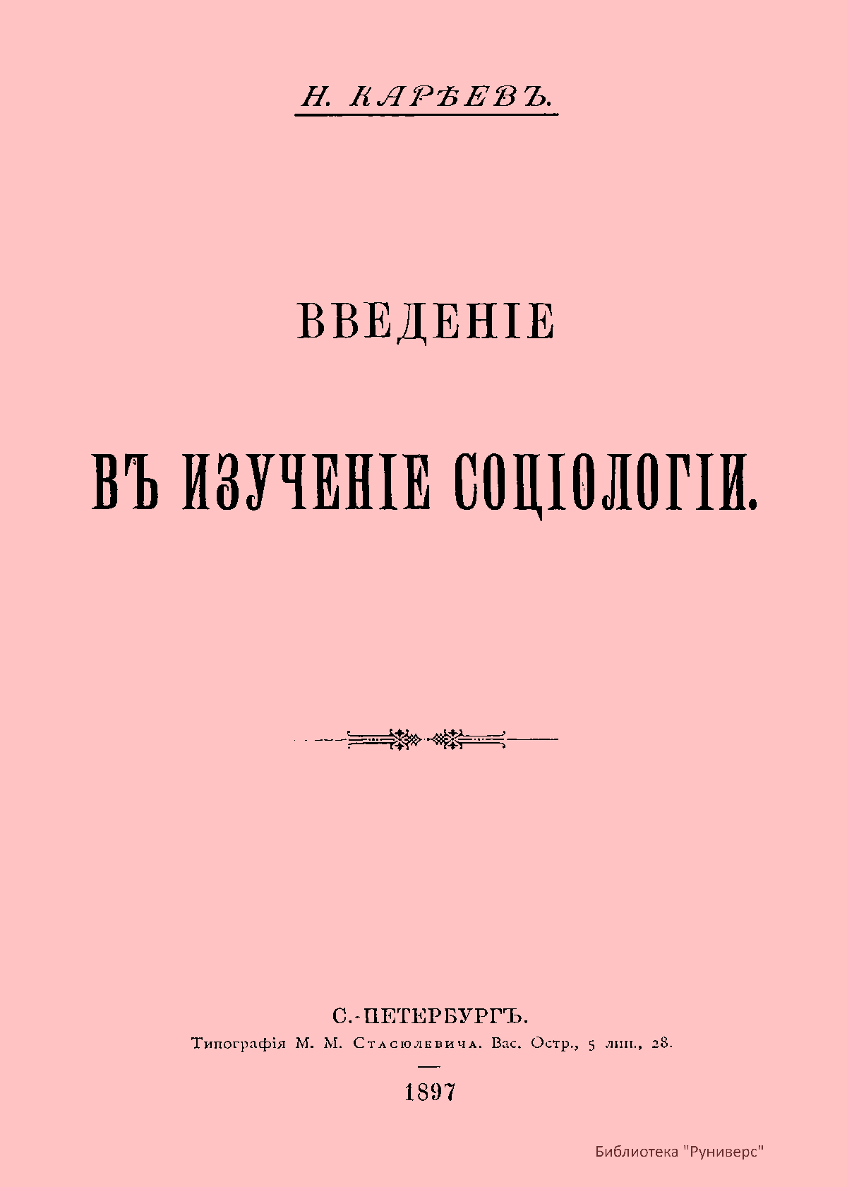 Как позже отметит сам автор, задачей его книги было подвести систематические итоги под развитием социологической литературы на Западе и у нас в разных направлениях. К мысли о создании «Введения» автора привело усилившееся в русском обществе стремление к самообразованию, а подходящего пособия, с помощью которого желающие могли бы познакомиться с предметом, методом, задачами, основными проблемами и историей социологии, не было. Он отмечал, что если по другим наукам всегда можно указать на общие пособия в виде школьных или университетских учебников «по социологии нельзя указать решительно ничего. Кареев решил восполнить существующий пробел, познакомив своих читателей с основами новой науки об обществе. Он ставил своей целью дать лицам, интересующимся социологией, общее руководство, которое помогло бы им ориентироваться в социологической литературе, познакомило бы их с важнейшими вопросами, в ней поставленными, позволило бы им критически отнестись к решениям, какие получили эти вопросы у различных писателей. Для того, чтобы читать студентам С.-Петербургского университета общеобразовательные курсы по социологии и философии истории, автору приходилось скрывать их под названием «исторической энциклопедии». Именно на материалах этого курса, который был разрешен министром народного просвещения Деляновым (и читался, начиная с осени 1891 года), им и был написано «Введение», открывшее социологии дорогу в российские университеты.
