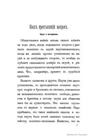 По определению автора, «главная идея Огюста Конта заключается в представлении науки как составляющей одно целое; представление, зиждящееся на положении: об естественном совпадении неорганического мира с основными законами органических и общественных явлений». Он пытаелся найти практическое применение идеям Конта, занявшись устройством жизни и быта крестьян в столыпинских имениях. Д. А. Столыпин пришел к выводу, что крестьянская община с ее круговой порукой задерживает переход крестьян к более рациональному и интенсивному хозяйству, и выдвинул идею арендного хуторного хозяйства. Д. А. Столыпин возглавлял комиссию Императорского московского общества сельского хозяйства по исследованию вопроса об устройстве крестьянских хуторов на владельческих землях (1874-1889). Эта комиссия несколько раз публиковала обширные доклады. Предлагаемая работа - один из опытов философской рефлексии на аграрную тему.