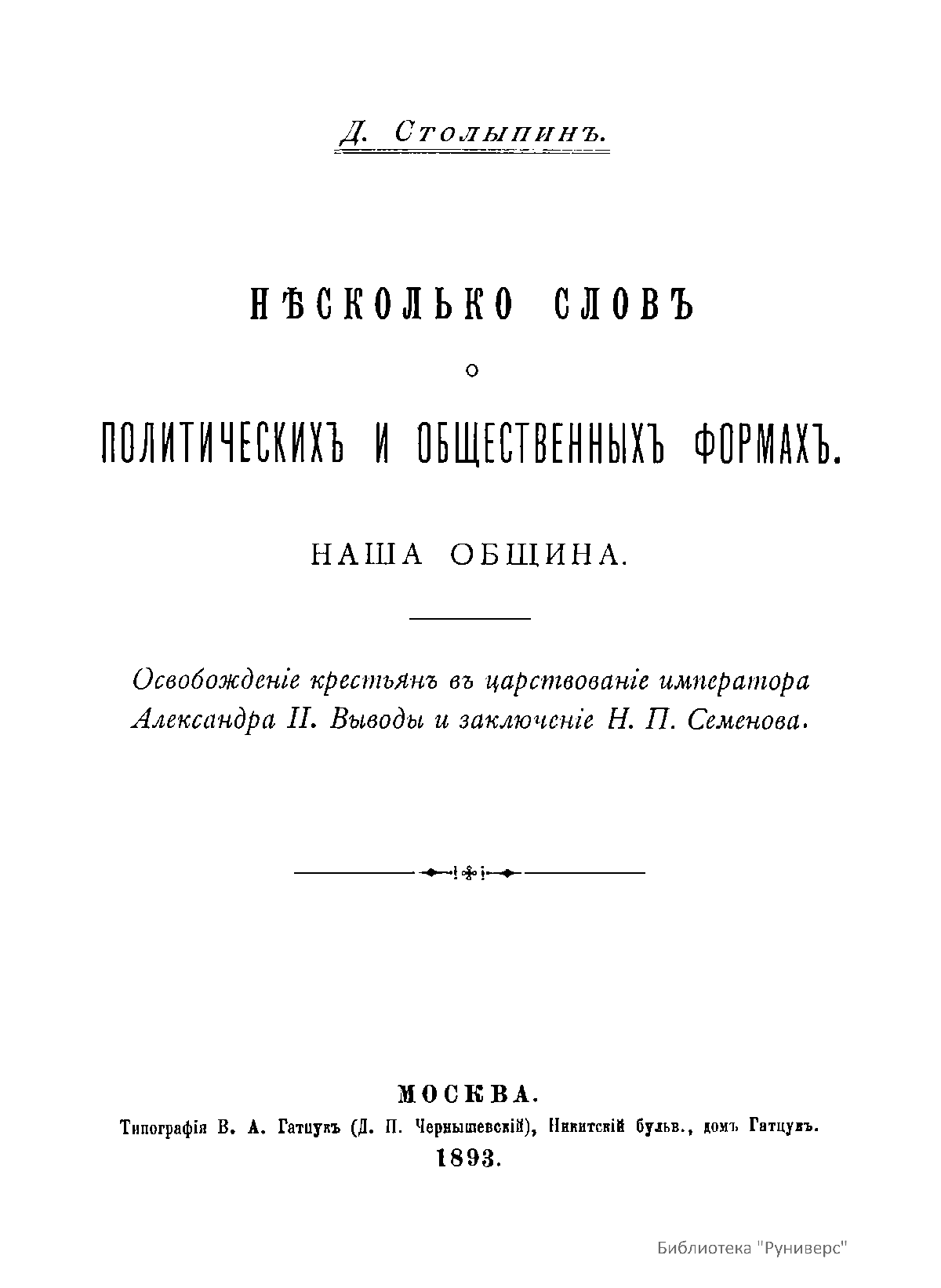 Нѣсколько словъ о политическихъ и общественныхъ формахъ. Наша община